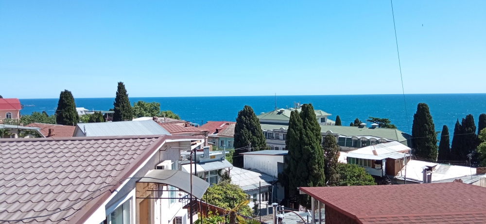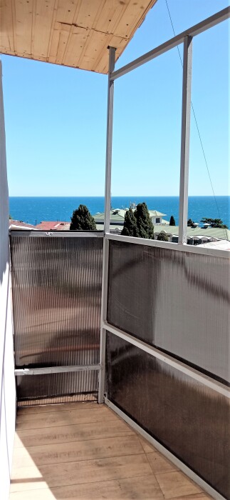 Сдается для отдыха 4 гостям часть дома на 2 этаже. В Вашем распоряжении: 2 раздельные небольшие комнаты, солнечная с видом на море веранда, кухонная зона, обеденная зона с видом на море, санузел. Жилье расположено на втором этаже дома, откуда открывается панорамный вид на море и окрестности. Все удобства: холодная и горячая вода постоянно, кондиционер, холодильник, телевизор.
