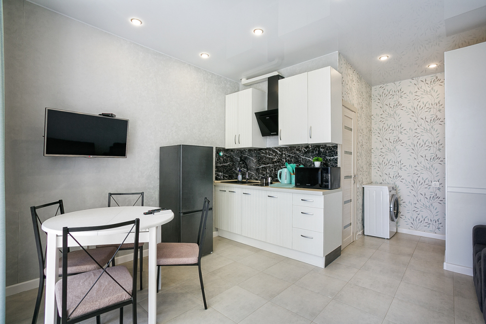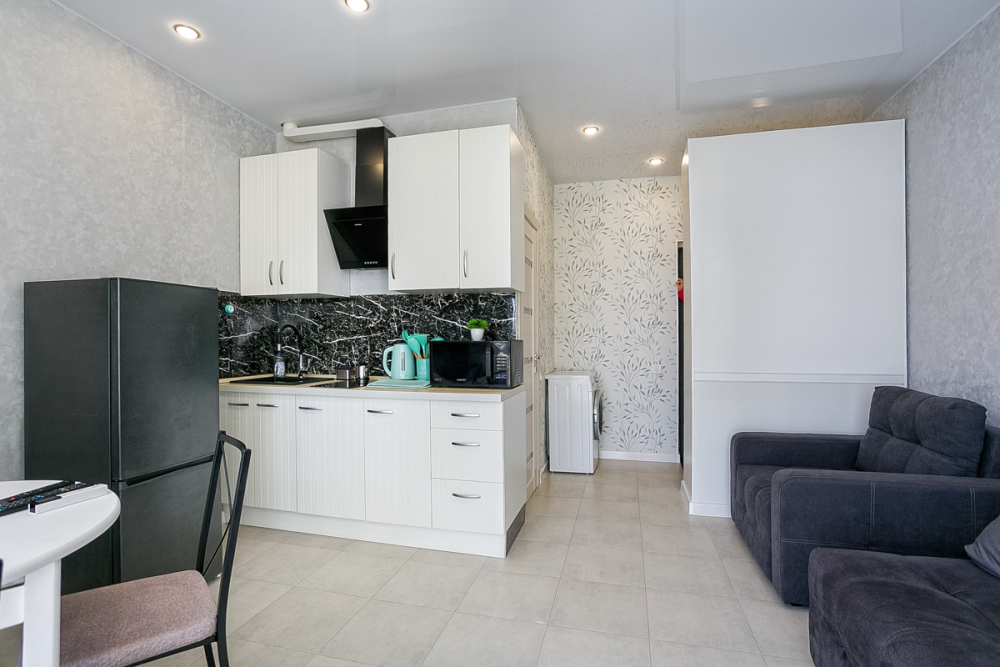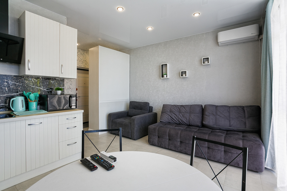 В квартире двухспальный диван и односпальное кресло-кровать, можно разместить три человека. Есть зона кухни: варочная поверхность. микроволновка, холодильник, электрочайник, посуда для принятия и приготовления пищи. В комнате телевизор SMART, кондиционер,WI-FI. Есть утюг, гладильная доска, фен, сушилка для белья, на балконе уличная мебель.