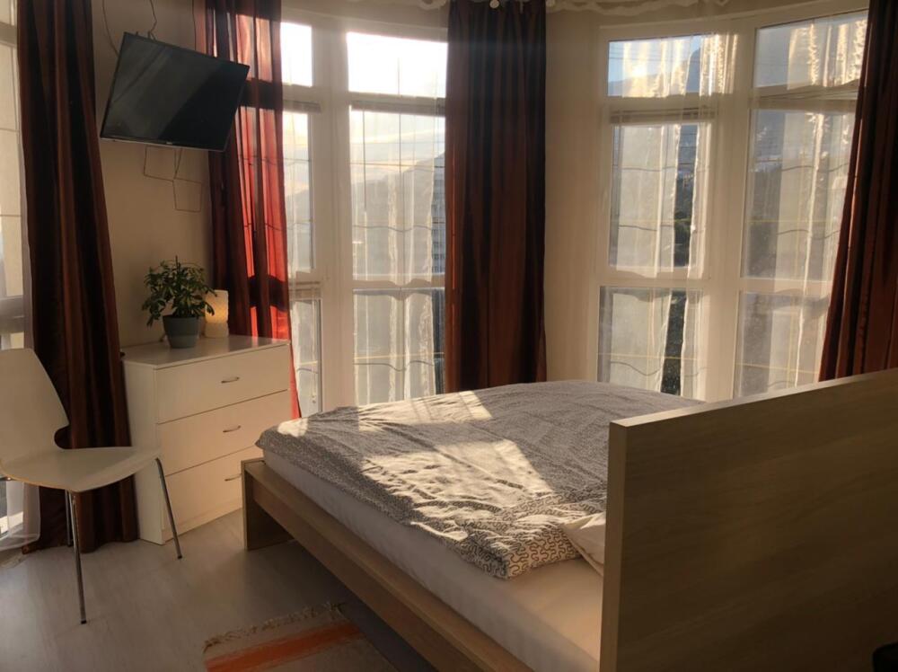 Уютные апартаменты с большим балконом с прекрасным видом на море и горы Ай-Петри. Отдельная полноценная кухня.