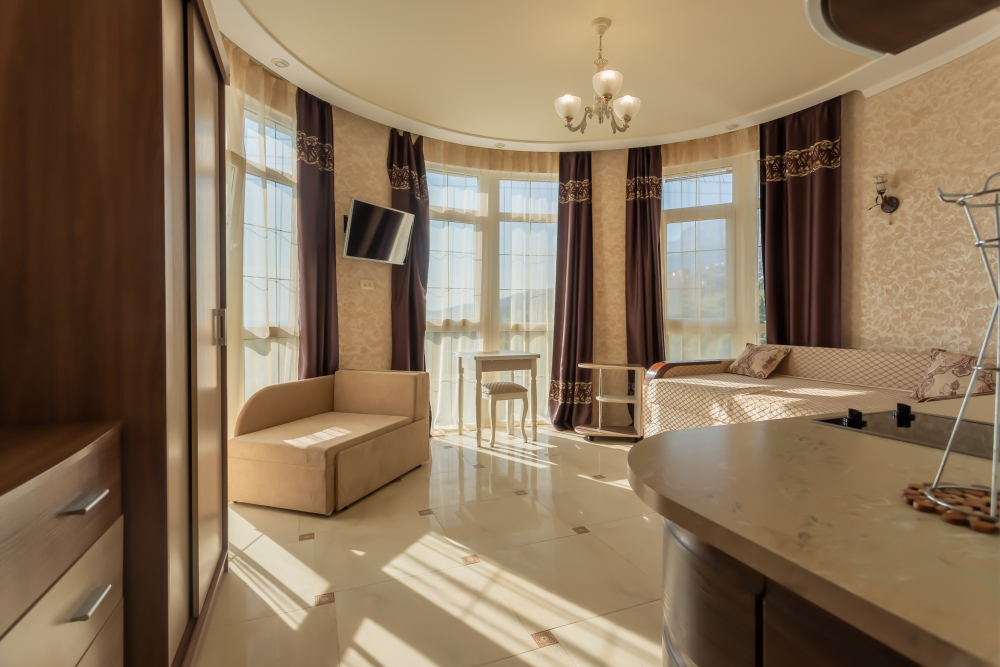 | 6/1 Круглые апартаменты с кухней и панорамными окнами с видом на море и горы Ай-Петри | 4500р. | 5500р. | 6000р. |