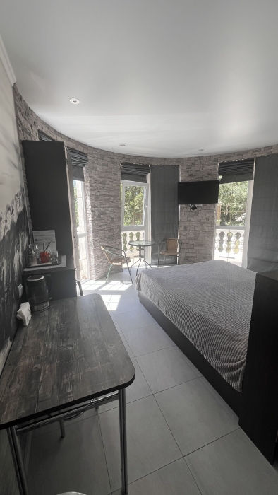 Уютный номер с двуспальной кроватью. В номере есть ванна, микроволновая печь, электрочайник.