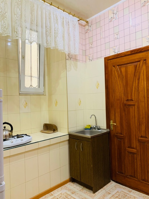 В квартире: кондиционер, телевизор, холодильник, утюг, микроволновка, сан. узел с душем. Вода горячая круглые сутки, отдельная кухня, вся не обходимая посуда для приготовления пищи, газовая плита. Пять спальных мест, кровать двухcпальная на втором уровне, внизу два дивана: односпальный и двуспальный.