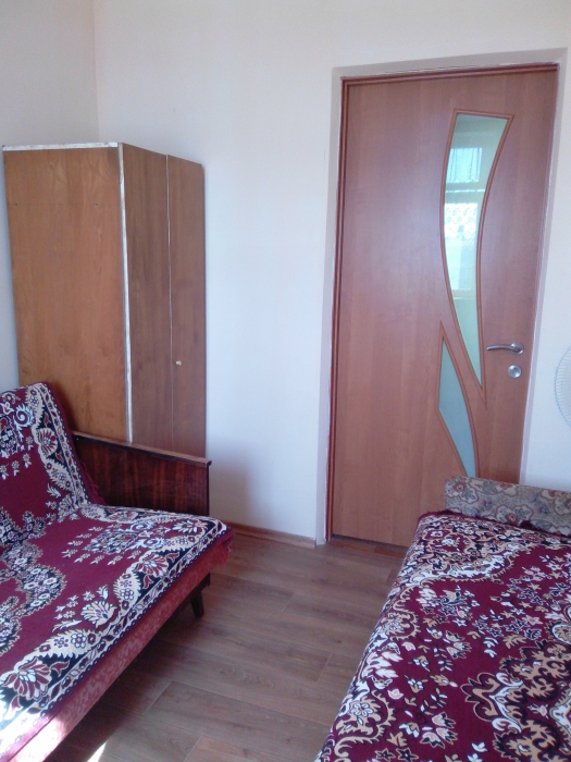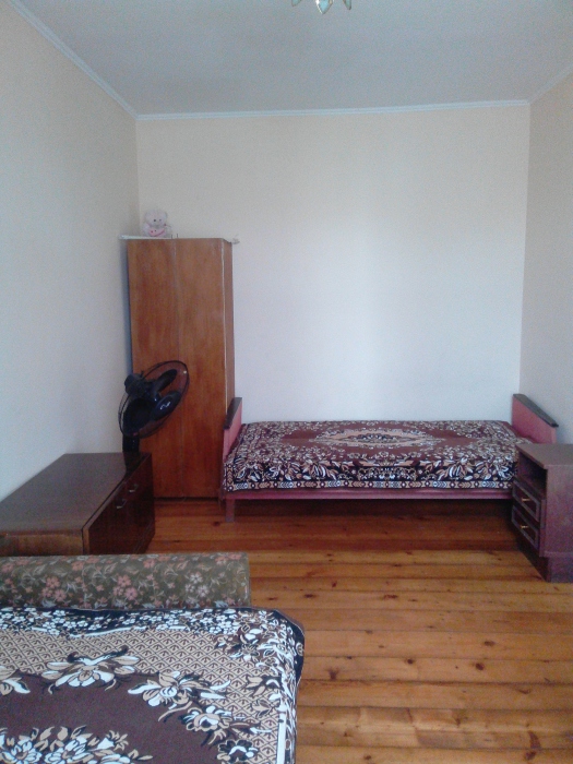 В каждой комнате по два 1,5 дивана, шкаф, тумбочка, вентилятор. Кухня со всей необходимой посудой в блоке, два холодильника. Санузел в блоке на 2 комнаты, душевые во дворе. Предоставляем все необходимое. Можно снимать по одной комнате