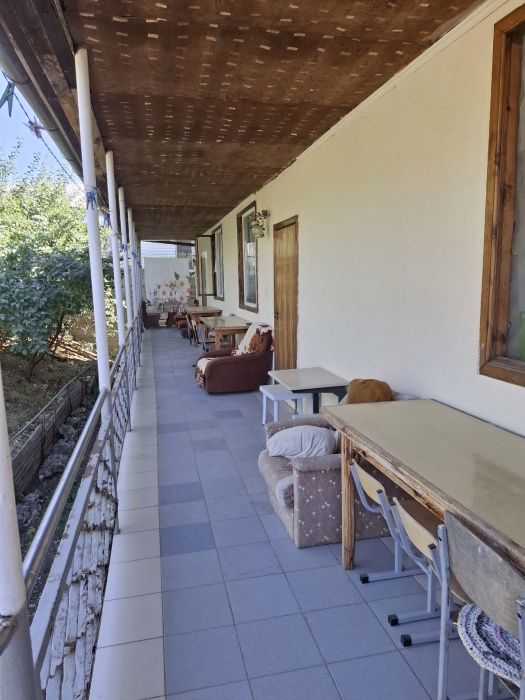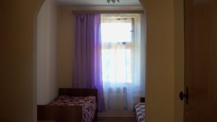 Обустроенные 2-х, 3-х местные номера эконом-класса с санузлом, кухня со всей необходимой посудой на два номера, душ на территории (есть бойлер). Во дворе есть кухня с большим обеденным столом, телевизор, стиральная машинка автомат (общего пользования).