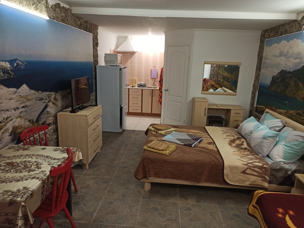 Эллинг «Анна» состоит из двух номеров. В каждом номере есть кухня со всей необходимой посудой, плита, холодильник, микроволновая, печь. Совмещённый санузел, холодная, горячая вода круглосуточно. Так же в номере имеется телевизор, кондиционер. Рядом с эллингом есть собственный дворик с местом для барбекю и мангалом. Имеются шезлонги, которыми можно воспользоваться на находящемся в 20ти метрах бетонном пляже. В нескольких минутах ходьбы есть городской галечный пляж.