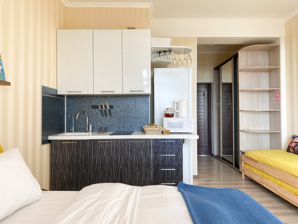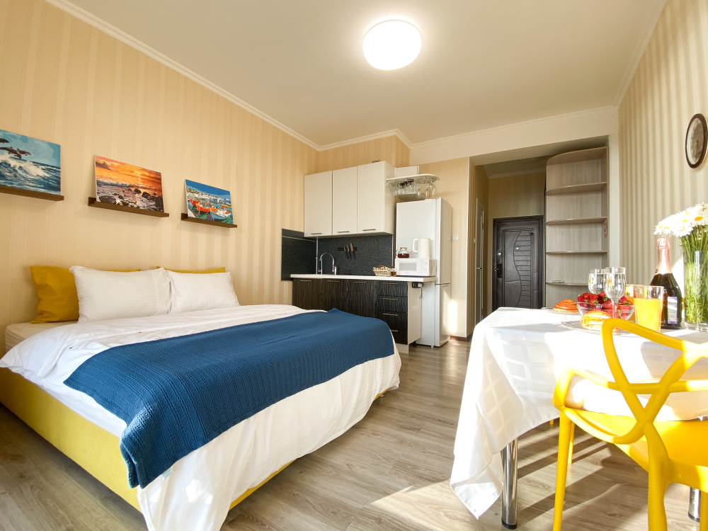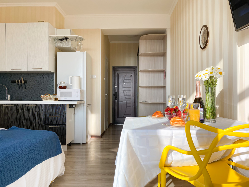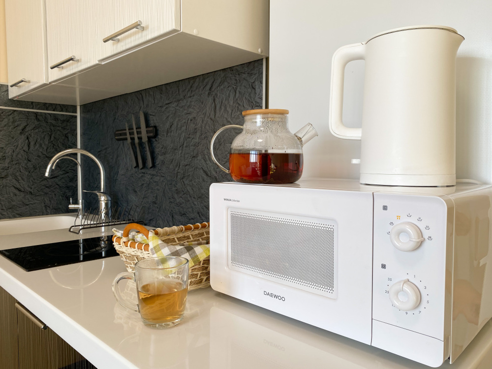 В распоряжении гостей: телевизор, кондиционер, кухонная зона, микроволновая печь, стиральная машина, фен, чайник, утюг. В апартаментах работает бесплатный Wi-F.