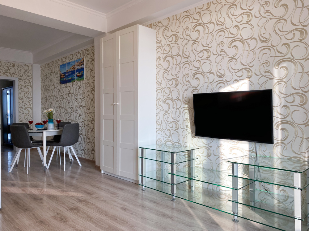 В распоряжении гостей: телевизор, кондиционер, кухонная зона, микроволновая печь, стиральная машина, посудомоечная машина, робот-пылесос, сушильная машина, фен, чайник, утюг. В апартаментах работает бесплатный Wi-Fi.