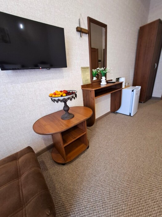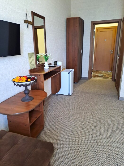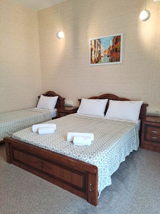 Предлагаем проживание в уютных номерах. Все номера оборудованы индивидуальными ванными комнатами, большими двуспальными и односпальными кроватями.