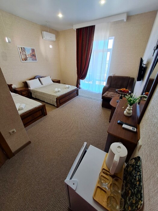 Просторный номер стандарт с балконом. Подходит для проживания 2 - 4 человек.
