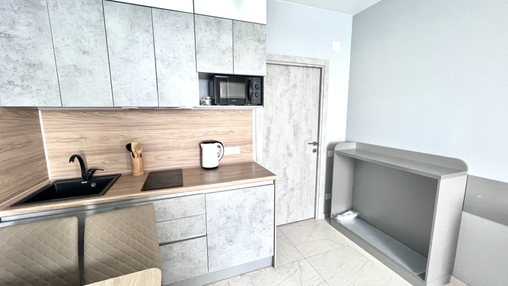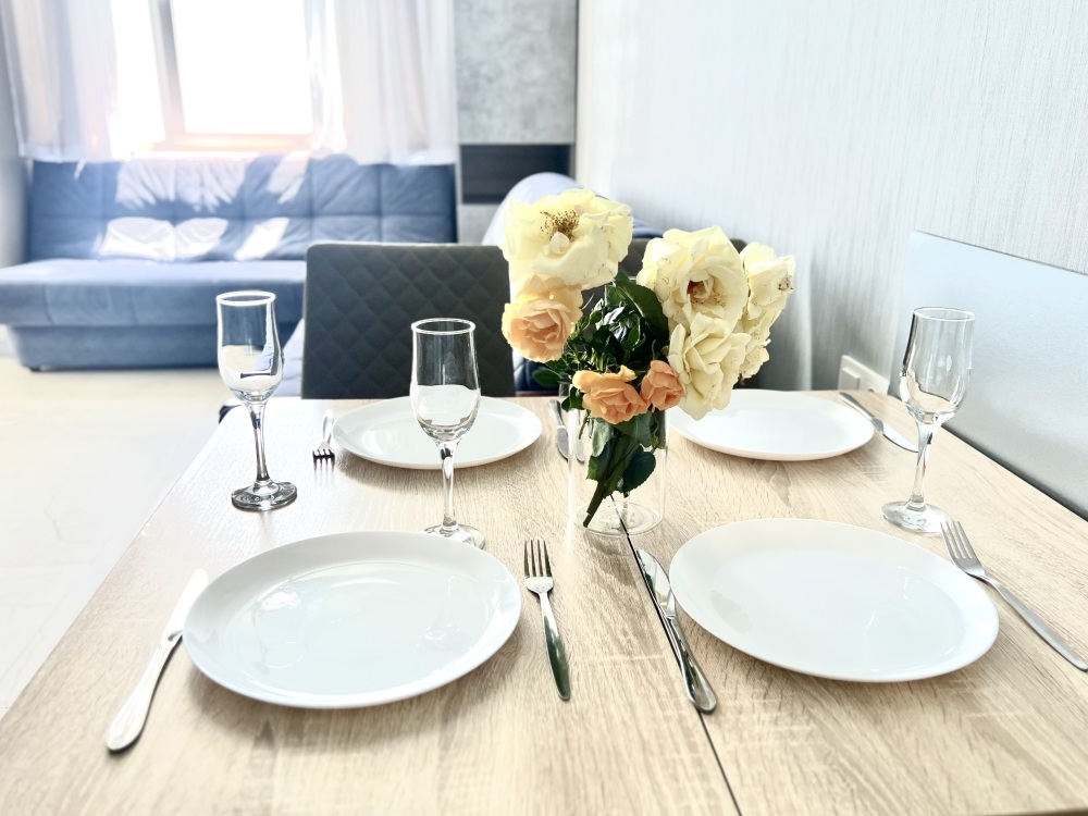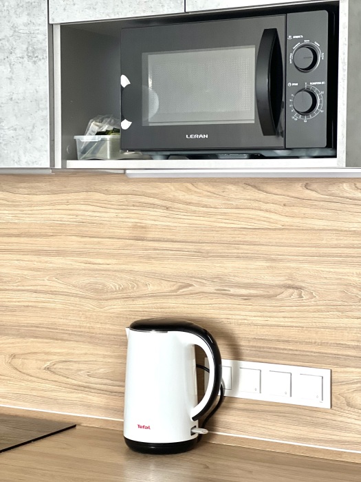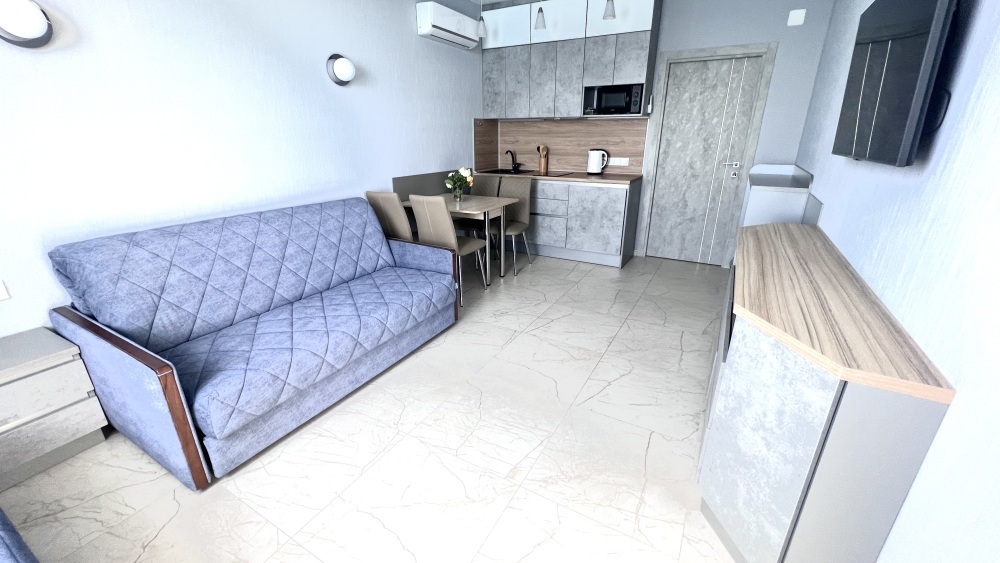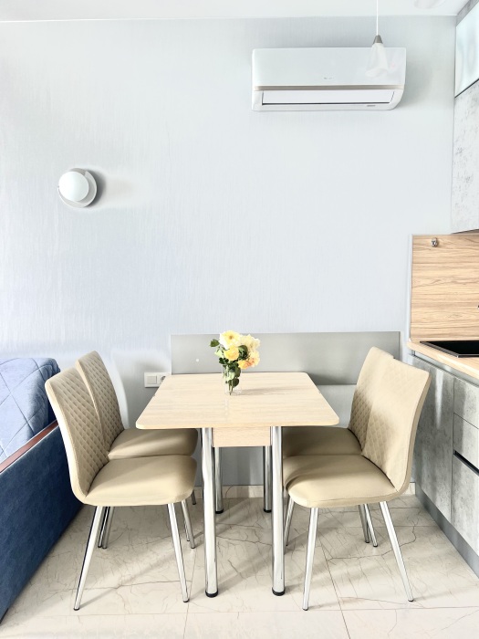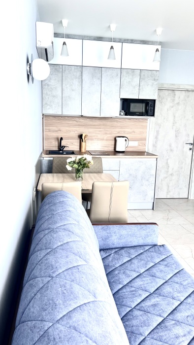 Все окна квартиры выходят на море, а открытый балкон позволяет наслаждаться свежим морским воздухом. Пространство квартиры комфортно организовано для отдыха большой семьи или нескольких семей-две раздельные комнаты с отдельными уборными; двумя кухнями, оснащёнными всем необходимым для приготовления самых вкусных блюд.