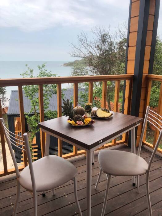 Эко домики с верандой и панорамным видом на море. Паркинг на территории отеля. Наличие детской площадки. Мангал - зоны для шашлыка оборудованы деревянными беседками.