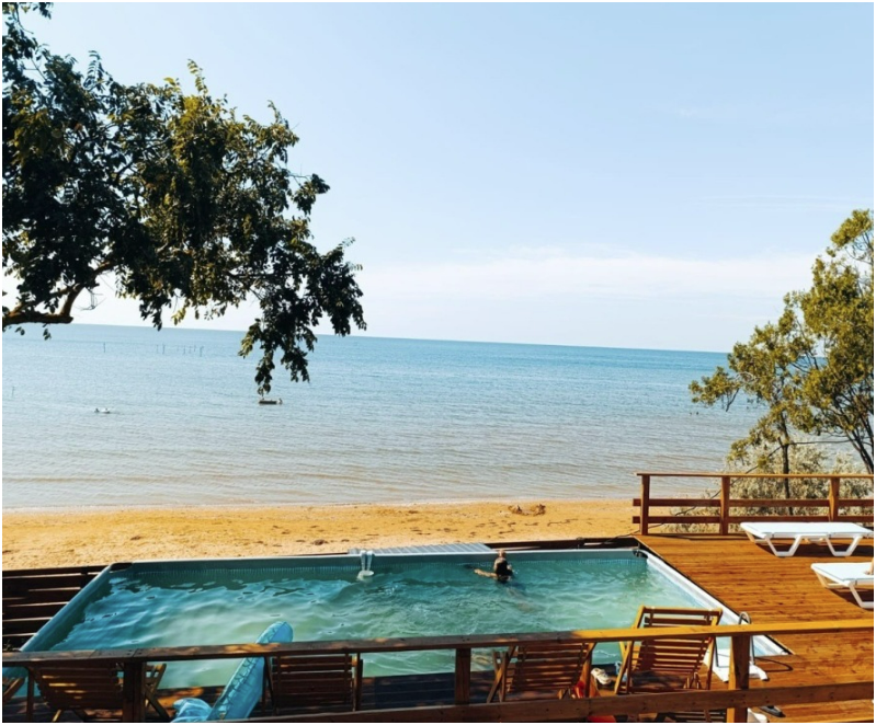 Эко-отель «Ambassador» предлагает комфортабельный отдых на берегу Азовского моря, первая береговая линия, свой огражденный выход на пляж, поселок Юркино.