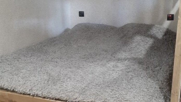 В номере находится двуспальная кровать и раскладное детское кресло.