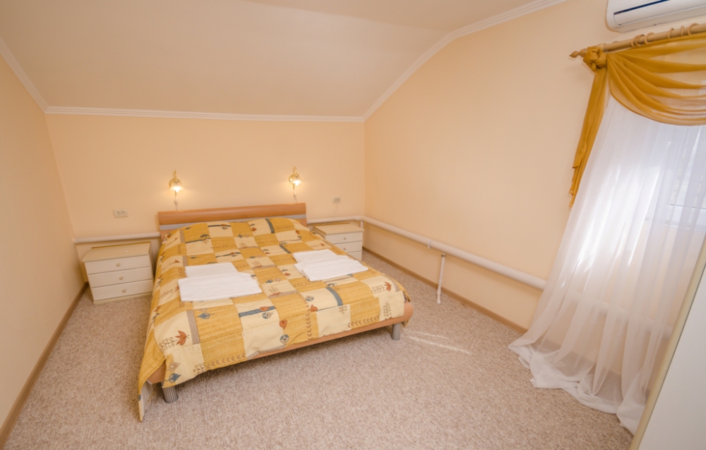 Комфортабельный номер с двуспальной кроватью, оснащен всем необходимым для приятного отдыха. В номере: двуспальная кровать, холодильник, кондиционер, телевизор душевая кабина, санузел, набор полотенец, набор туалетных принадлежностей, горячая и холодная вода круглосуточно.