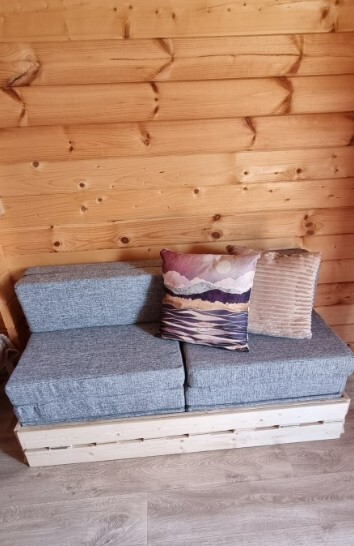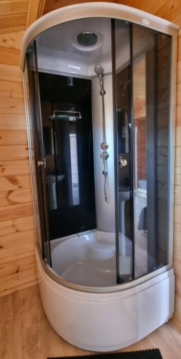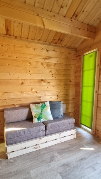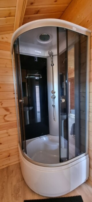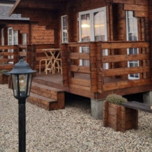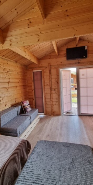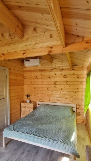 В семейном домике может разместиться до 4-человек. Здесь расположена 1 двуспальная кровать и двухместный диванчик. В домике есть все необходимое для комфортного отдыха. На веранде можно выйти перекусить, отдохнуть.