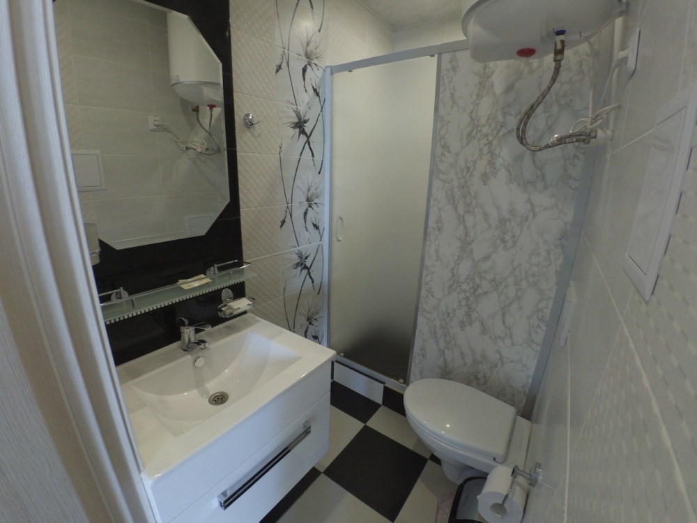 В квартире есть все необходимое для отдыха и проживания: телевизор, кондиционер, бесплатный Wi-Fi, кухня с набором посуды, чайник, микроволновая печь, утюг, фен. Просторная двуспальная кровать, раскладной детский диван, плюс возможна установка дополнительной раскладной кровати.