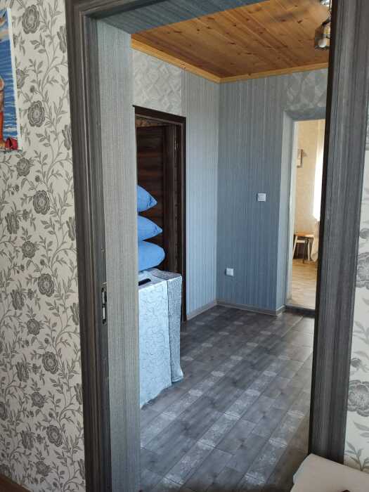 В домe три спальни и гoстиная сoвмещённaя с кухней.
