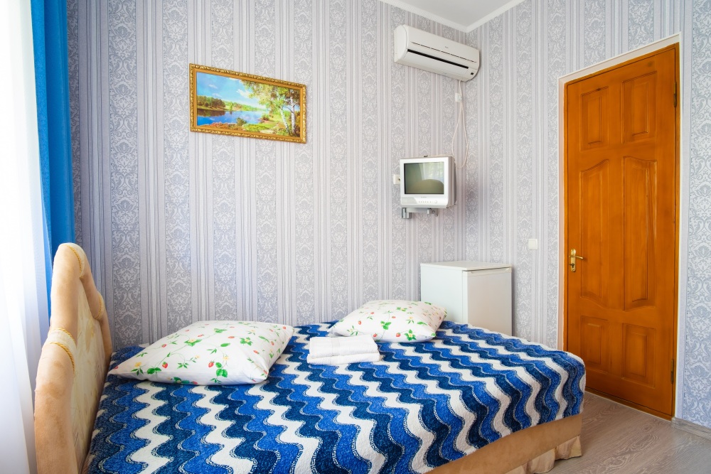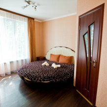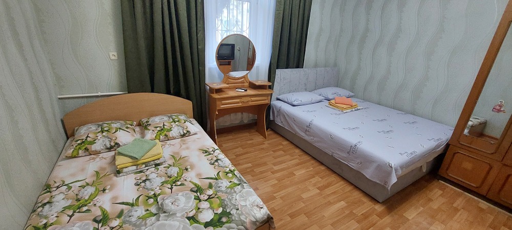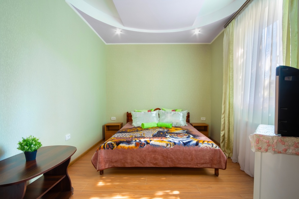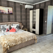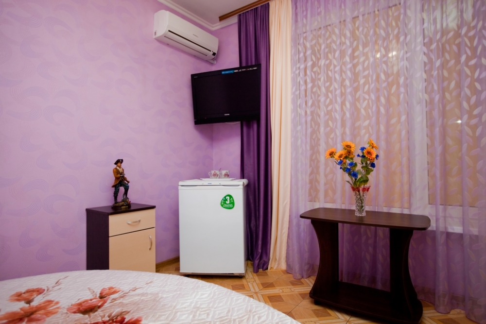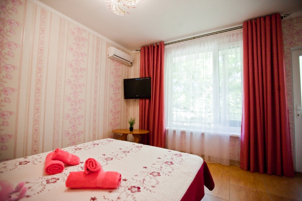 Номер «Царица» - шикарный, просторный номер, дизайн выполнен со вкусом, сами хозяева декорировали этот номер. Получил название «Царица» за оформление. Особенности: находится на 2-м этаже, имеет 2 больших окна и собственный балкон, где можно посидеть за столиком и полюбоваться садом. Большой холодильник и жк телевизор, чайник сделают проживание ещё более комфортным. Номер семейный говорит сам за себя. Часто бывает на стопе, бронировать рекомендуем заранее.