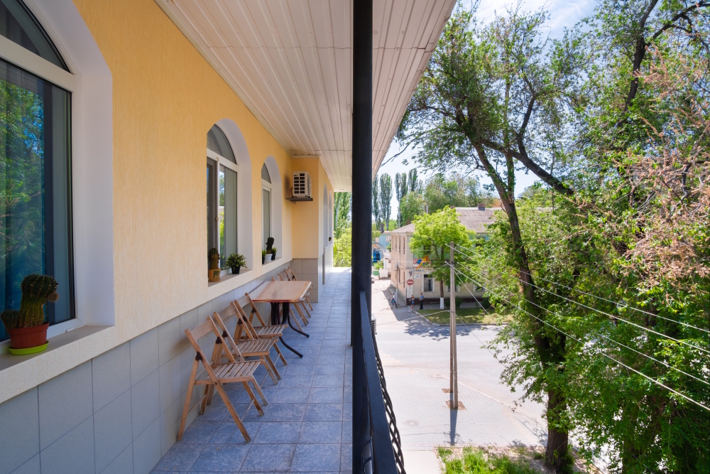 Можно вечером посидеть во дворе на свежем воздухе, пожарить шашлык или местную морскую рыбу. За окнами номеров слышны соловьиные трели. Не оставит равнодушными и пары которые хотят побыть наедине, наслаждаясь тишиной и отдыхом. Для них построен отдельный корпус со своим входом. Все номера имеют современную отделку, находятся на втором этаже, имеют шумоизоляцию, подходят для новобрачных и имеют общую террасу.