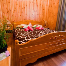Номер «Деревянный» - название говорит само за себя. Отделка стен выполнена из дерева, экологически чистый и уютный. В номере стоит большой холодильник. Часто бронируют семьи с детьми, номер находится на 1-и этаже, много возвратных клиентов.