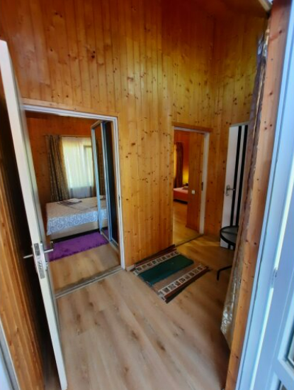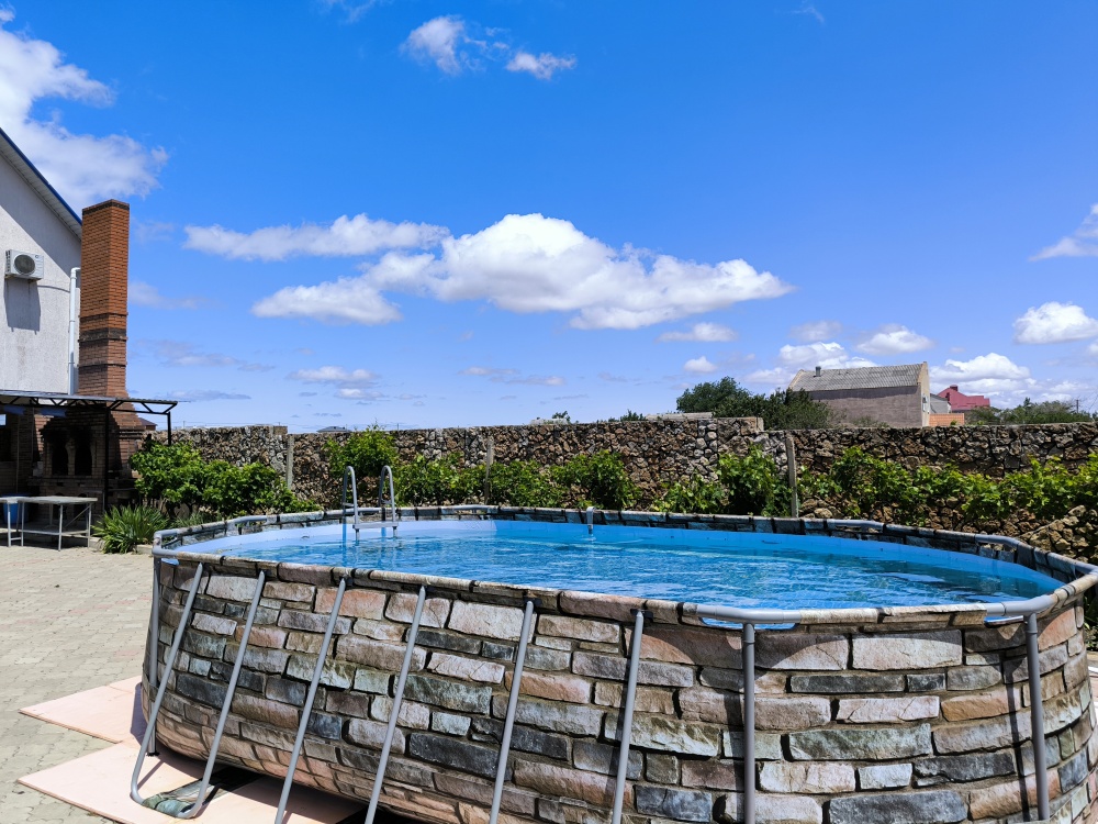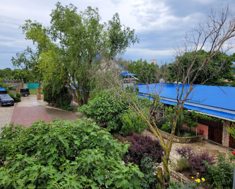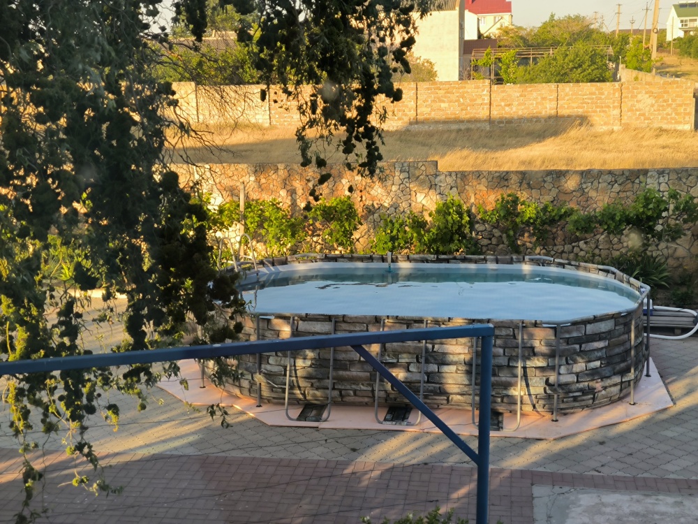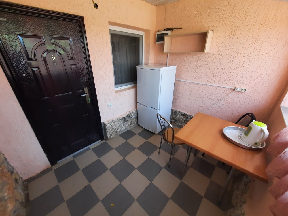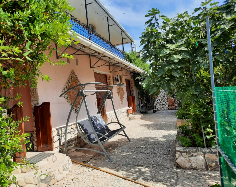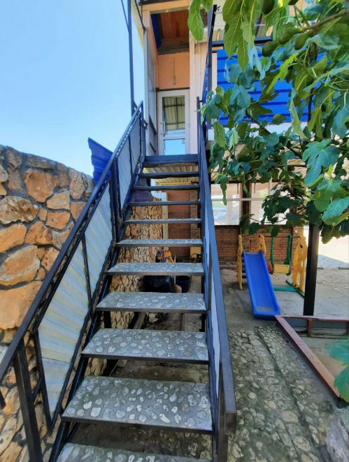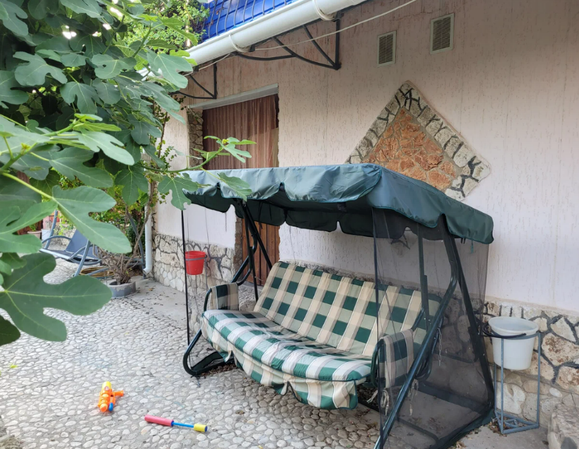 На территории есть мини-детский уголок, садовые качели, большой каменный мангал, общая кухня.