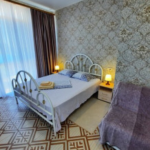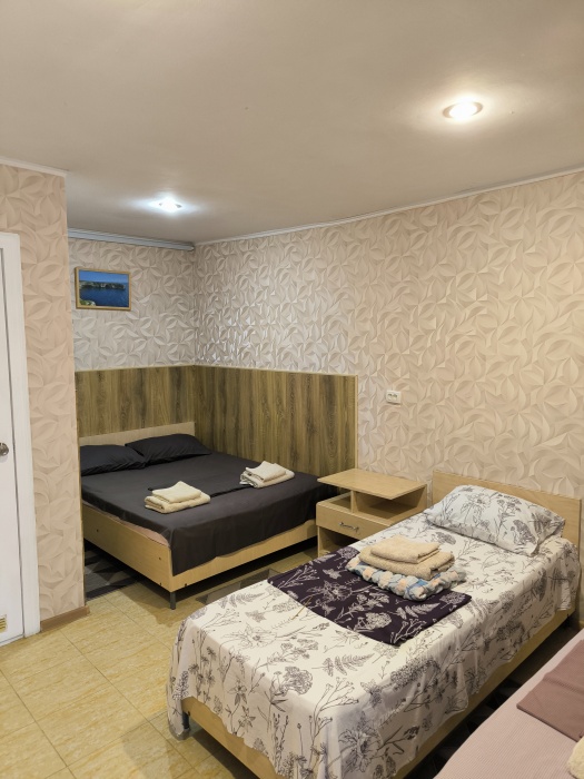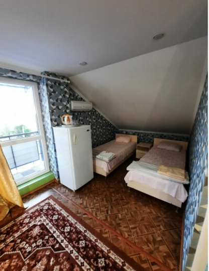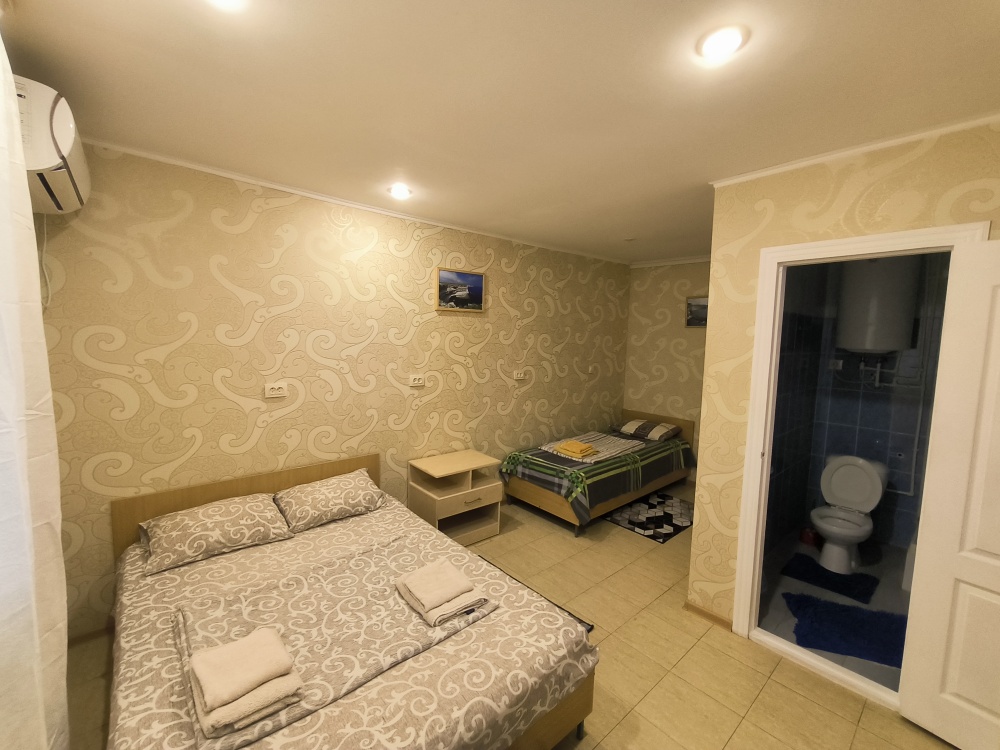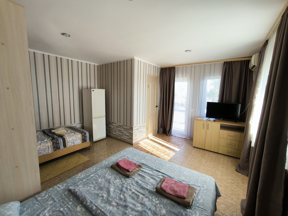 На закрытой территории гостям для размещения предлагаются комнаты разных категорий и вместимости, со всем необходимым для комфортного отдыха. В комнатах: кондиционер, бесперебойная холодная и горячая вода, постельные принадлежности, ТВ, холодильник, санузел с душевой кабиной.