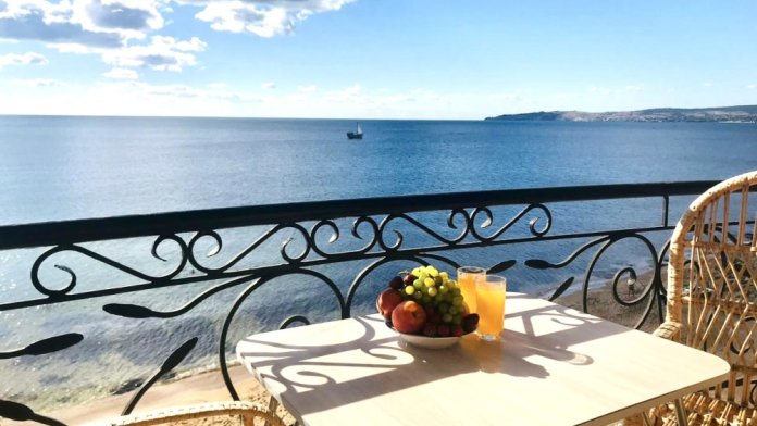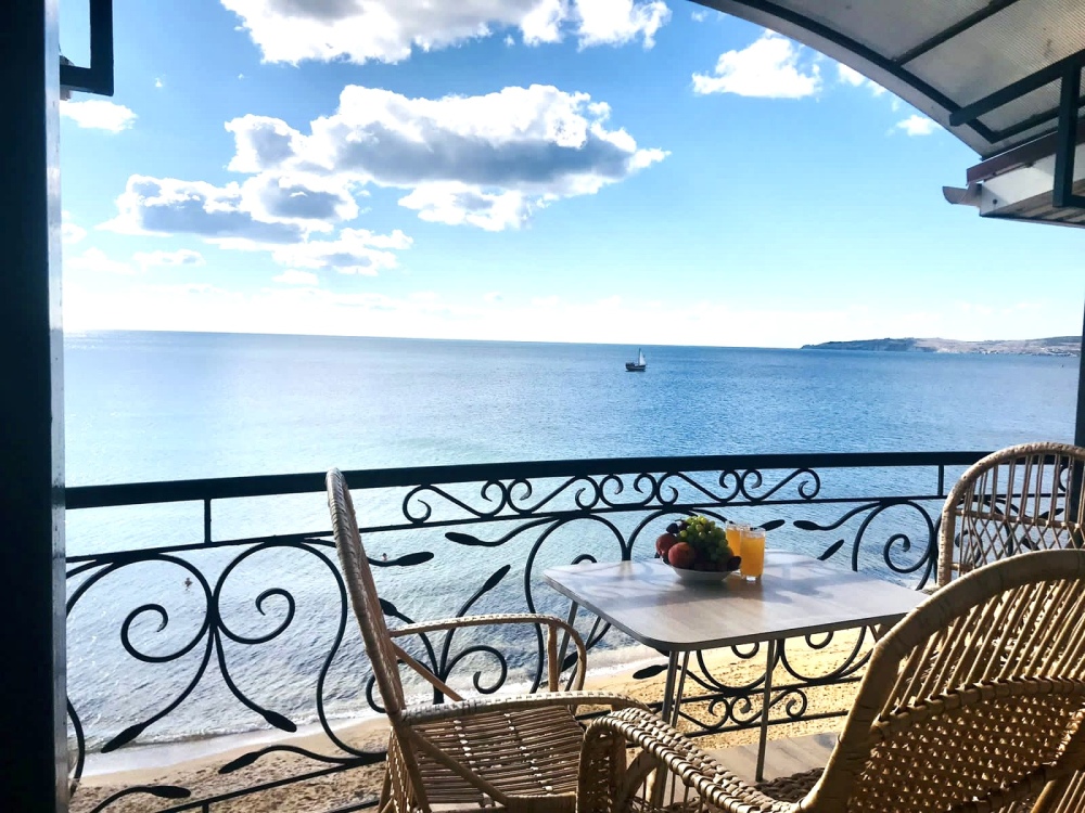 Отель «Аура» расположен на берегу Чёрного моря в живописном городе Феодосия, в самом южном и наиболее солнечном регионе. Её уютные номера с балконами возвышаются на береговой склоне, открывая потрясающий вид на бескрайнее море и городской пейзаж.