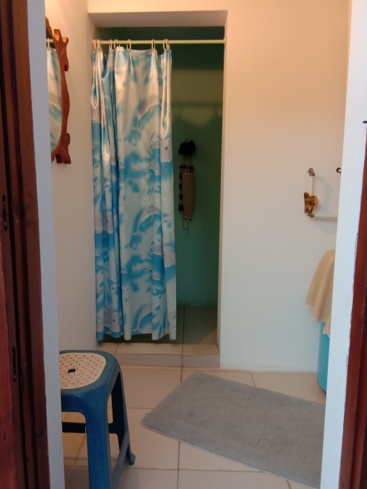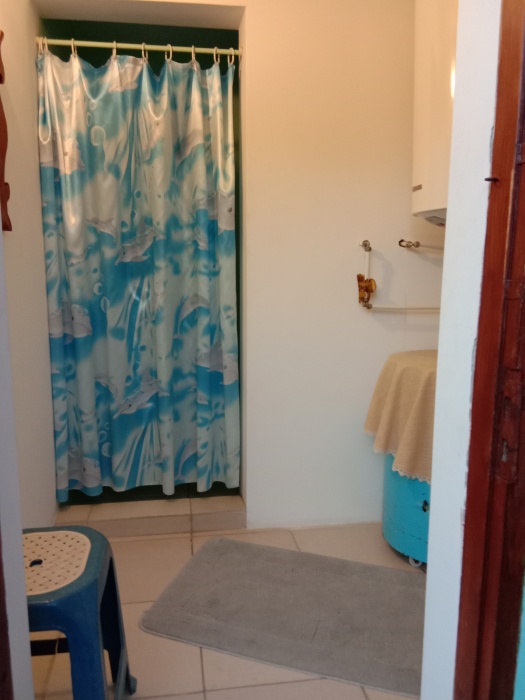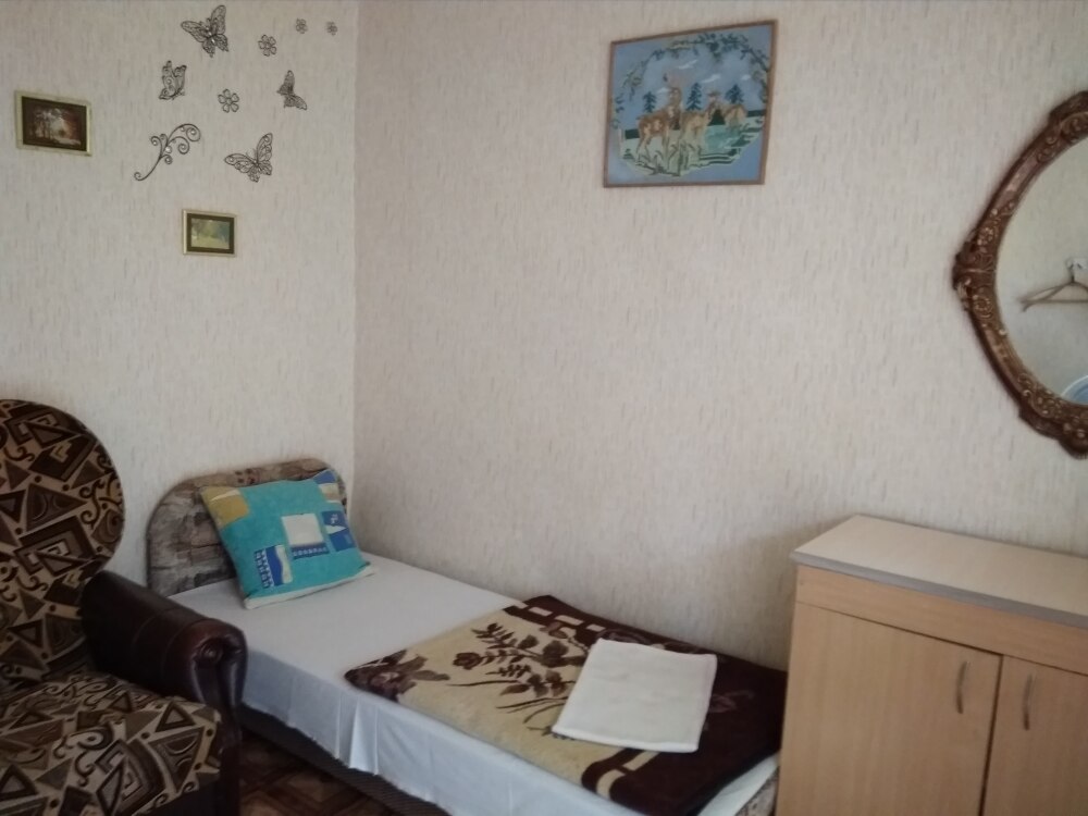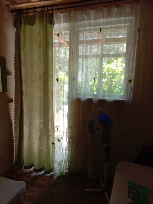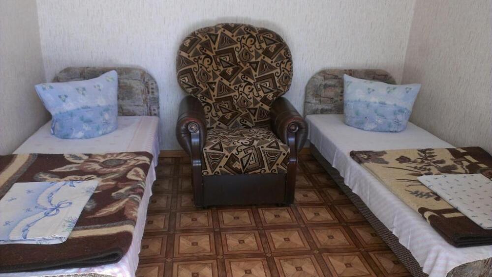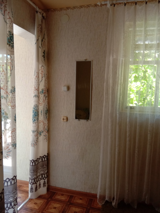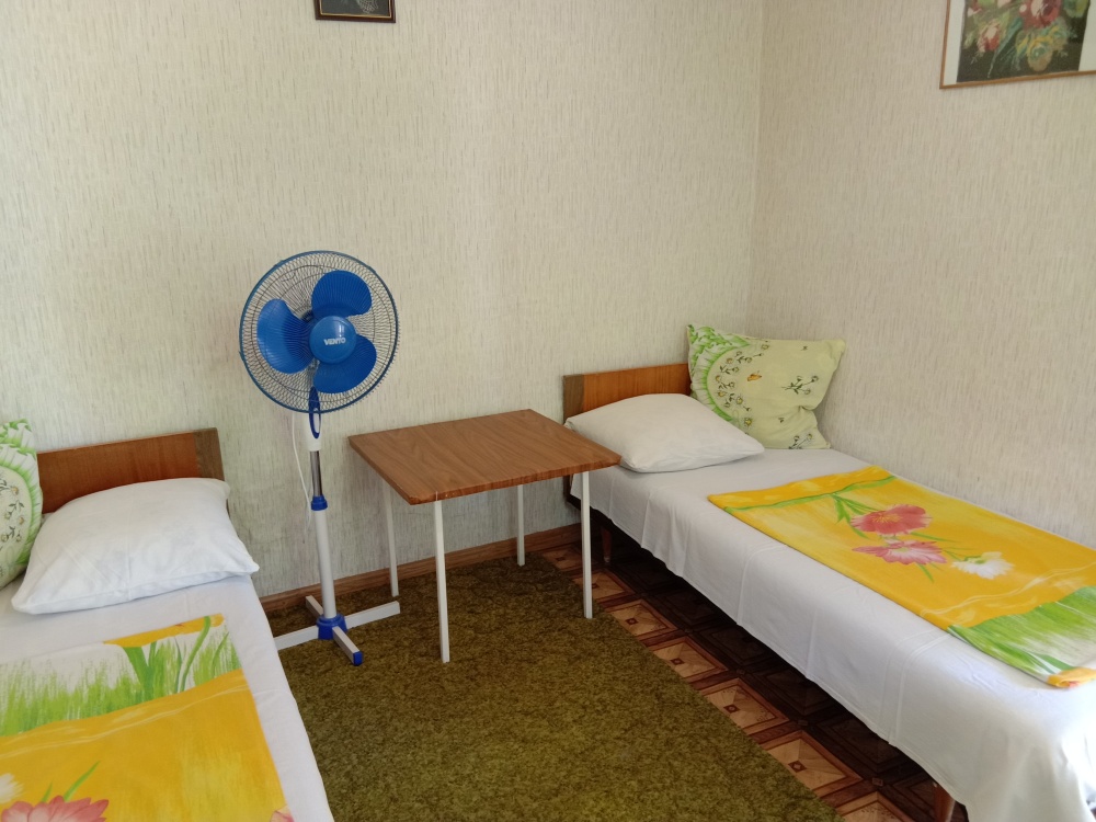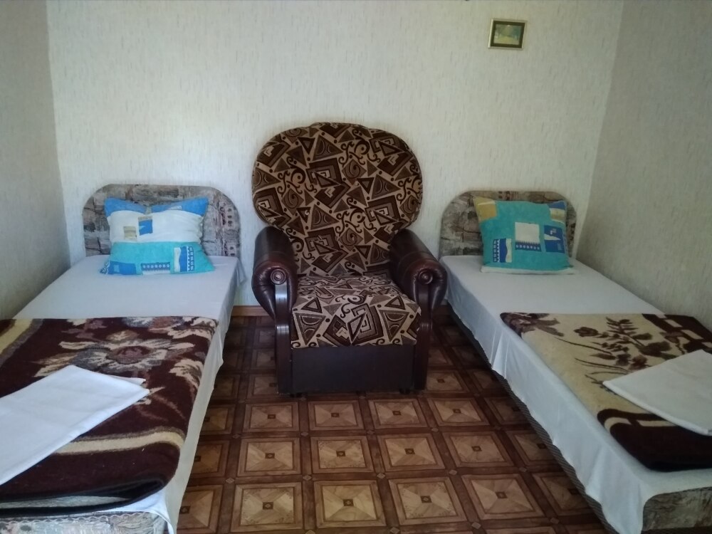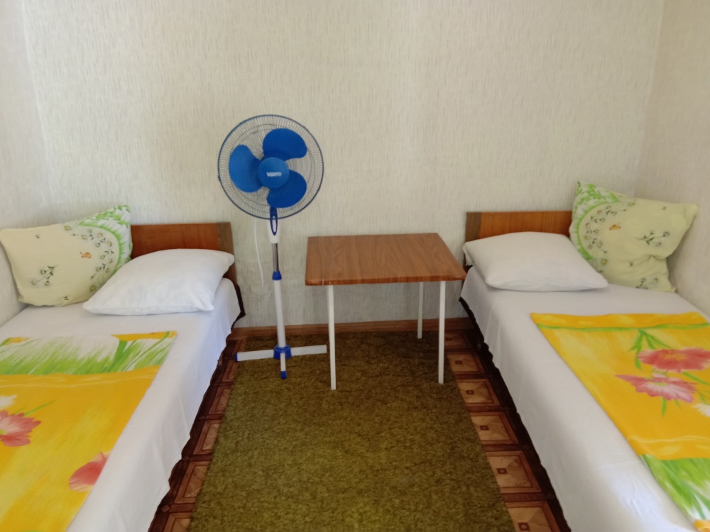 Номер имеет отдельный выход во двор. Под навесом около номера, в тени винограда находится обеденная зона. В номере есть всё необходимое: постельное белье, журнальный столик, комод для белья, плечики для одежды, зеркало, полочки, напольный вентилятор. Полотенца выдаем по требованию. Горячий душ, туалет - раздельные, общие на три номера. На общей кухне есть необходимое оборудование: газовая плита, разделочный стол, мойка, холодильник, посуда.