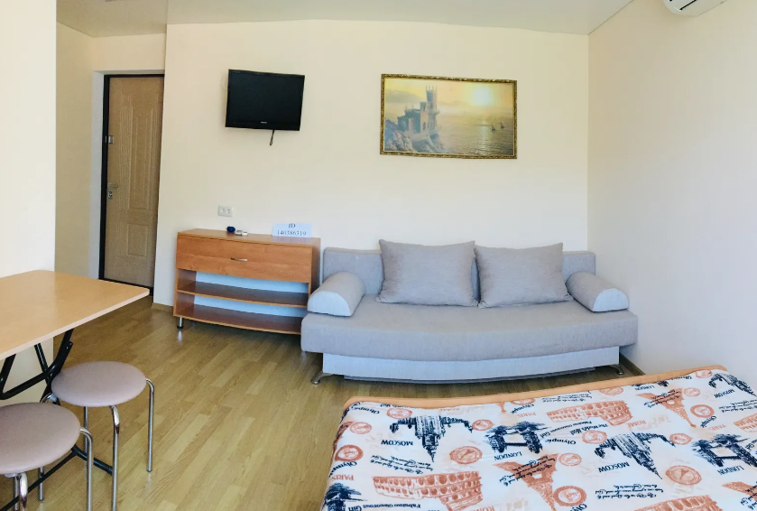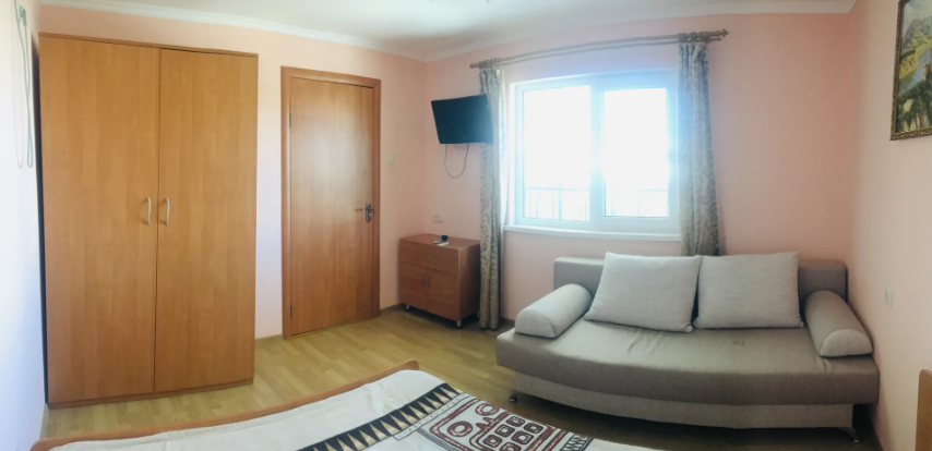 В гостевом доме 4 комфортных нoмеpa. В каждом номере индивидуальный санузел (туалет, душевая, умывальник), холодильник, телевизор, кондиционер, металлическая дверь. На 2 этаже 3 номера с выходом на просторный балкон. Во дворе качели для отдыха. Напротив дома беседка с мангалам. Есть стоянка для авто.