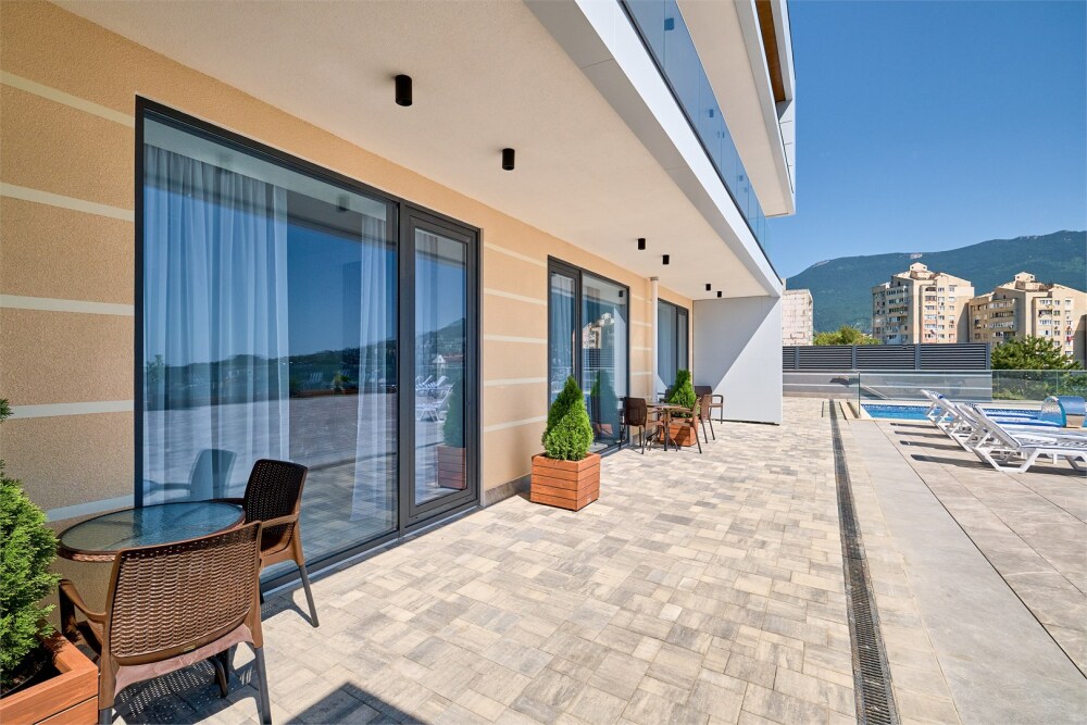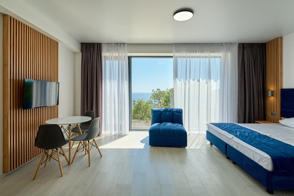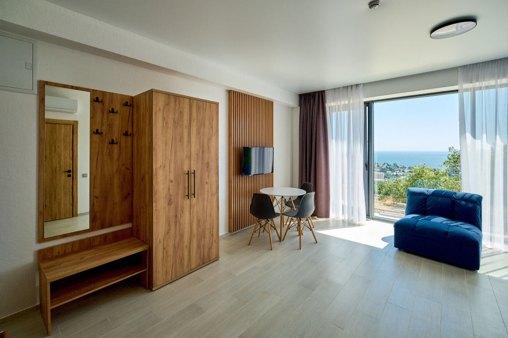 Апартамент-студия с прямым выходом к бассейну и видом на море