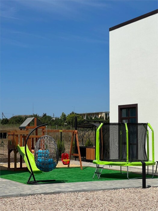 Гостевой дом «Villa Lazurit» находится у самого Черного моря (350 метров от пляжа «Белая Жемчужина») в поселке Оленевка, расположенном на мысе Тарханкут, который является Национальным заповедником.