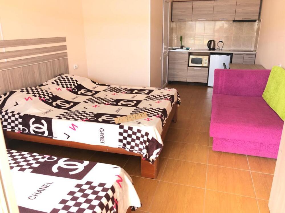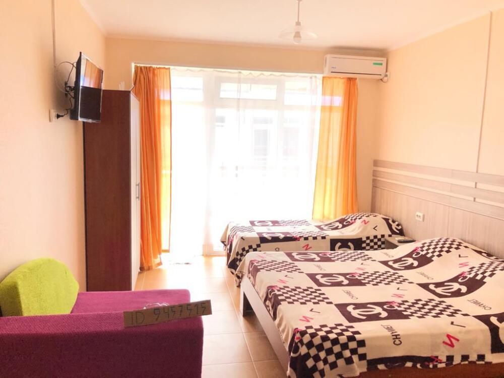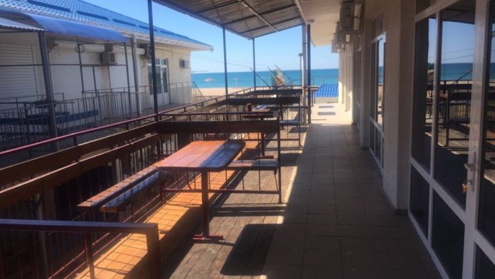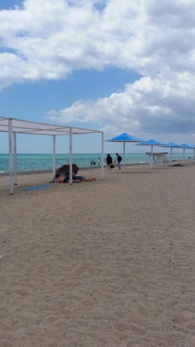 Первая линия, до моря 50 метров, пляж песчаный, на пляже зонтики и волейбольная сетка, детская площадка кафе и магазин. Море чистое, открытое, на против нас расположены солевые озёра, лечебные Сакские грязи, поэтому воздух у нас считается оздоровительный, лечит астматические и лёгочные заболевания.