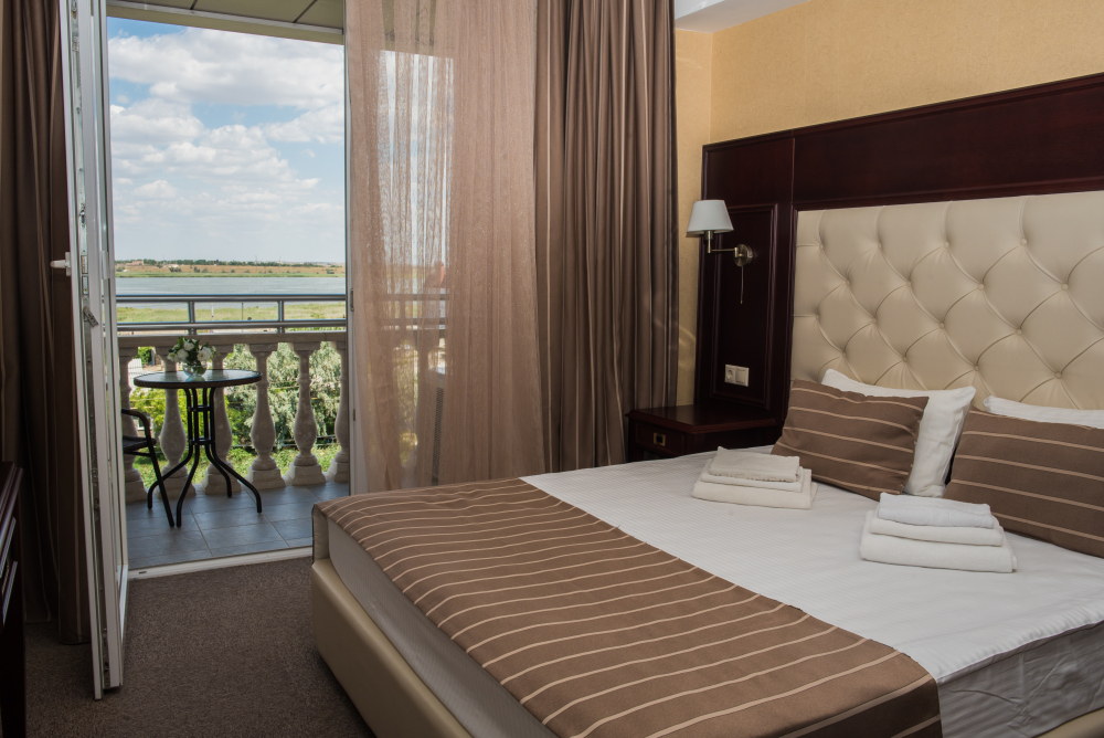 Номер повышенной комфортности, сочетающий в себе современный интерьер в стиле «Неоклассика» и безумно красивый панорамный вид на море.