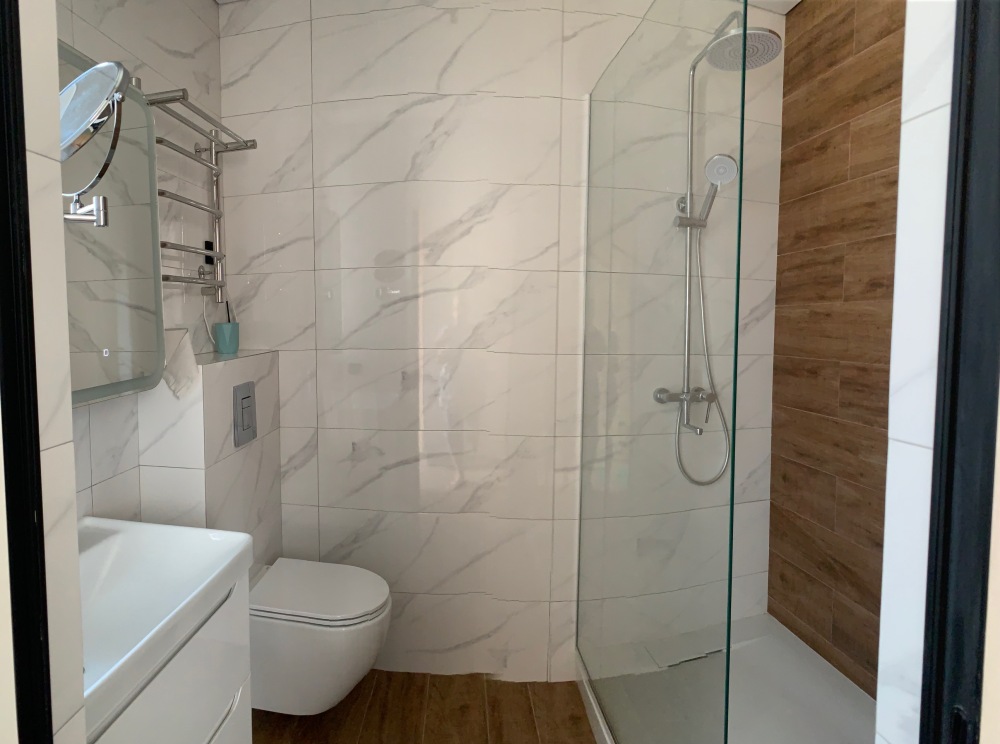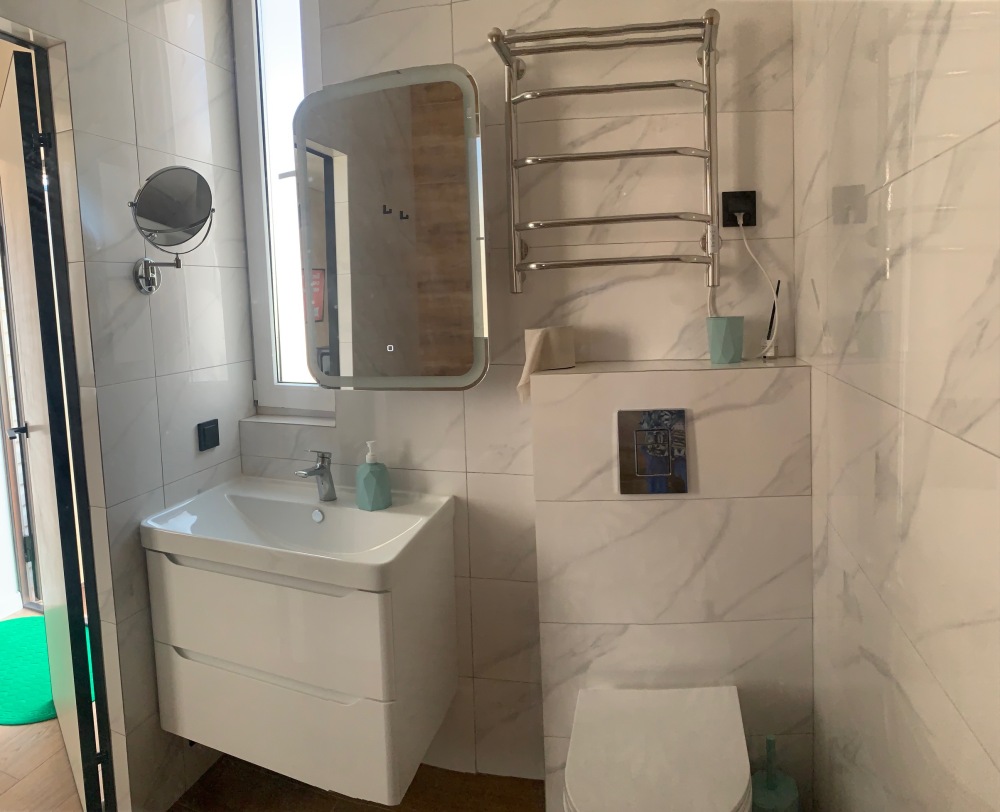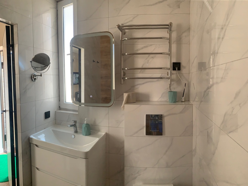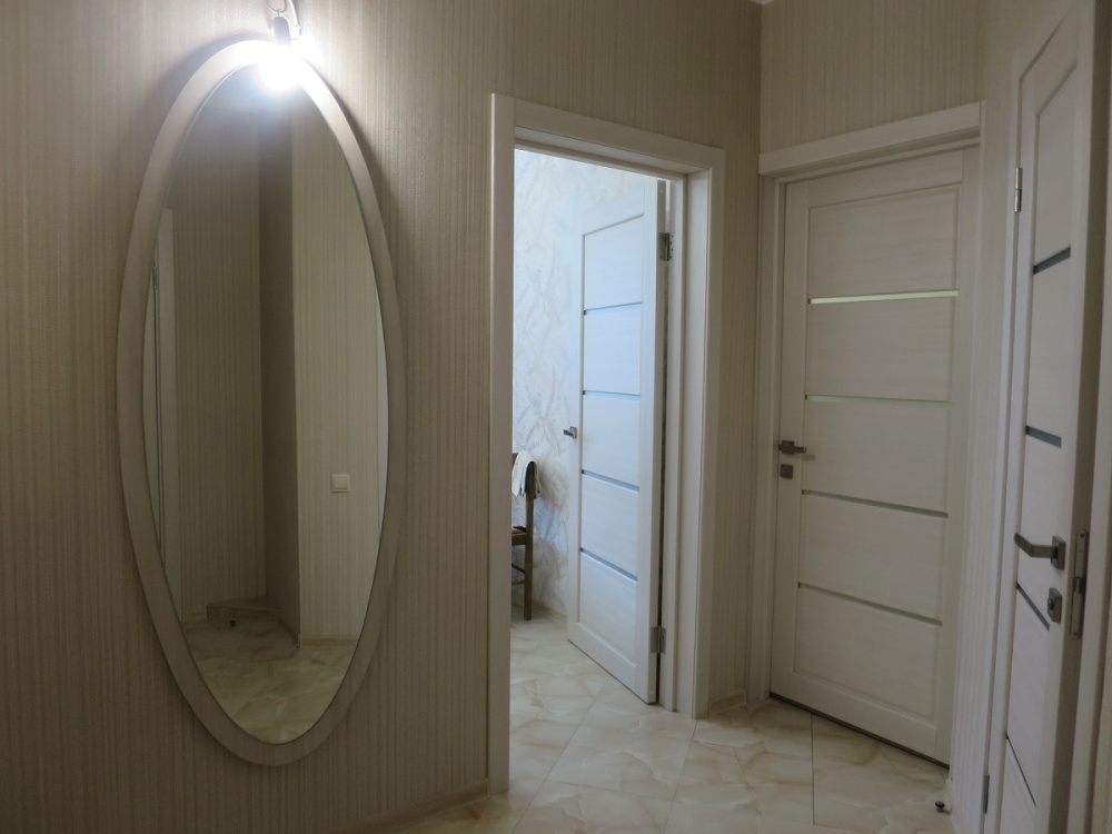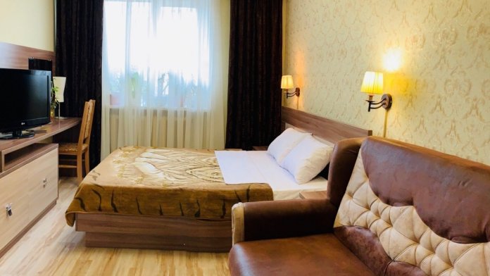 В номере: туалет, душ, кондиционер, два телевизора, холодильник. Wi-Fi - (роутер рядом с номером). Из мебели: кровать двуспальная, 2 дивана двуспальных, две прикроватных тумбочки, тумбочка для телевизора, пенал для белья, внутренний шкаф для чемоданов, сумок. Рабочий стол для компьютера, журнальный столик, парфюмерный столик. Кухня на этом же этаже, рядом с номером (на три семьи,), где находится вся не обходимая посуда, для приготовления пищи, микроволновка, газовая плита.