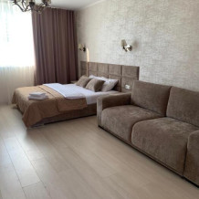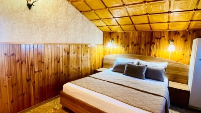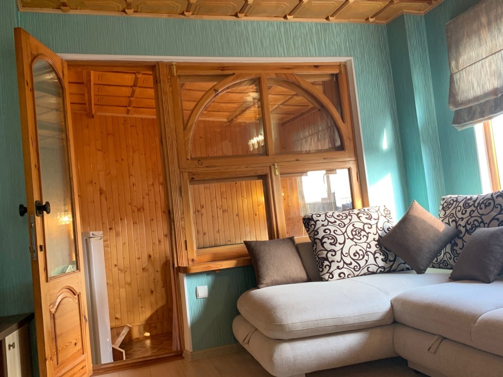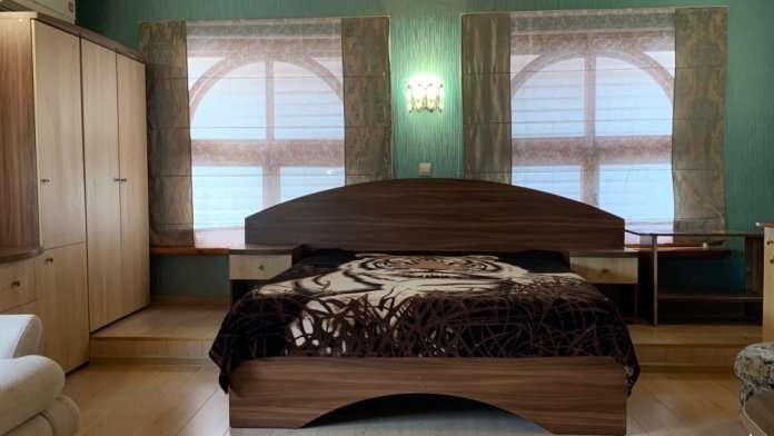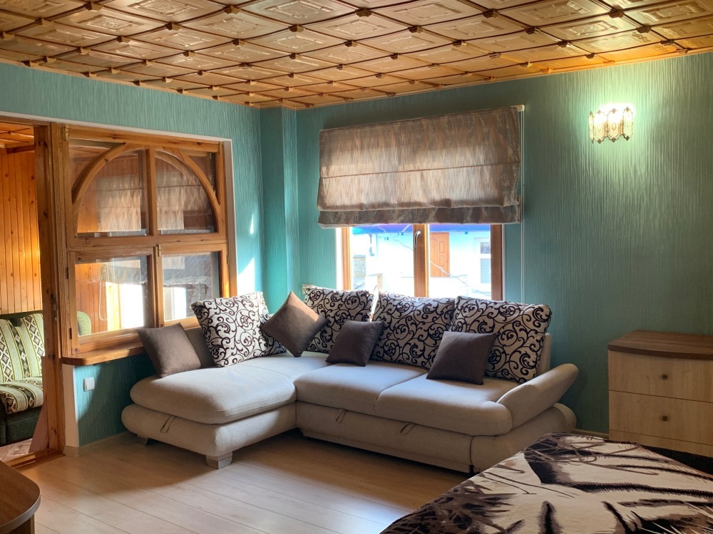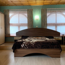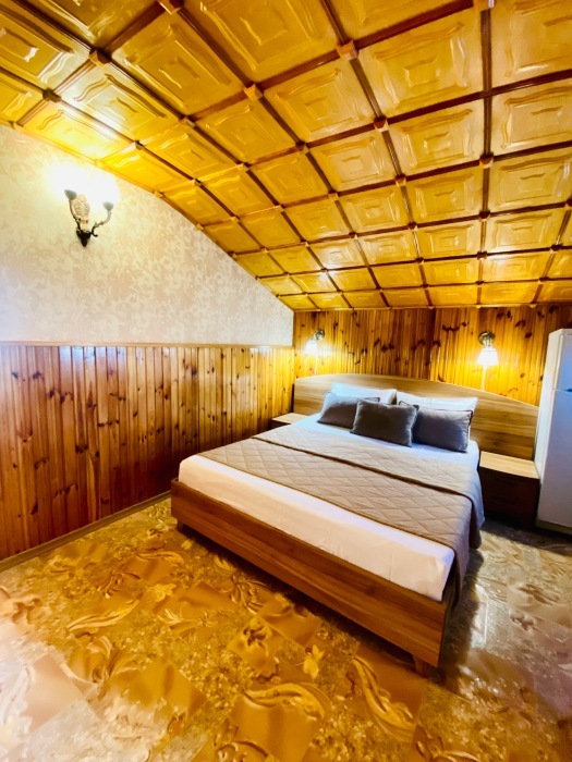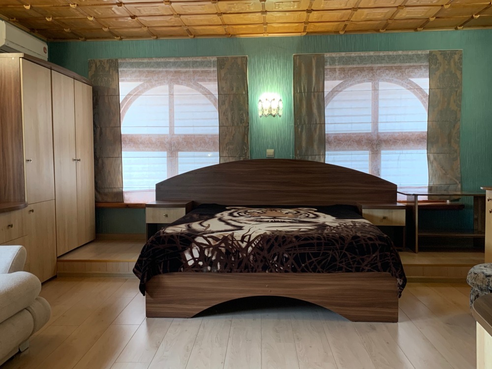 Номер находится на втором этаже, двухэтажного коттеджа. В комнате все условия: кровать двуспальная, диван двуспальный, телевизор, холодильник. кондиционер, утюг, интернет. Кухня в номере: со всей не обходимой посудой. Имеется не большой балкончик.