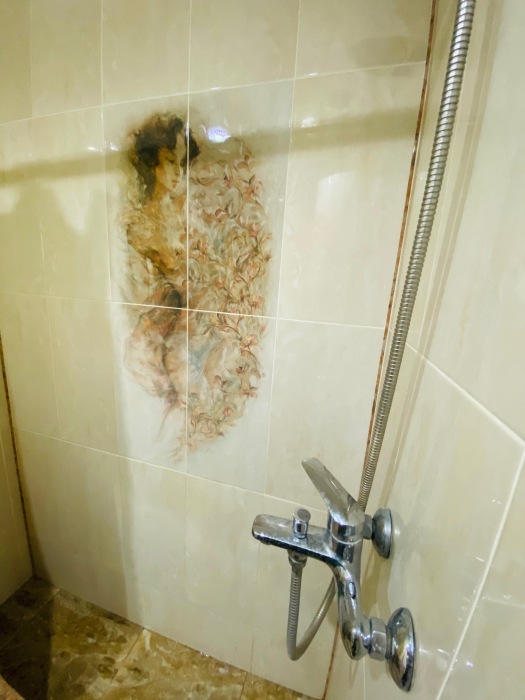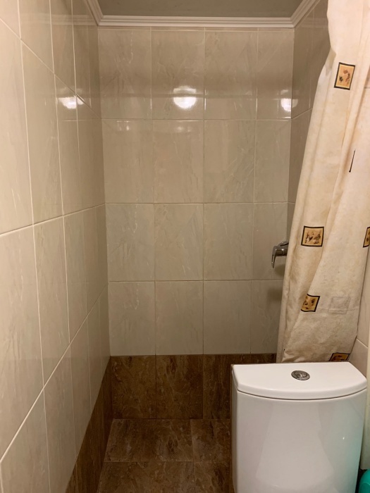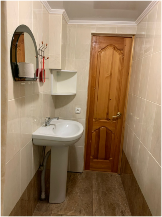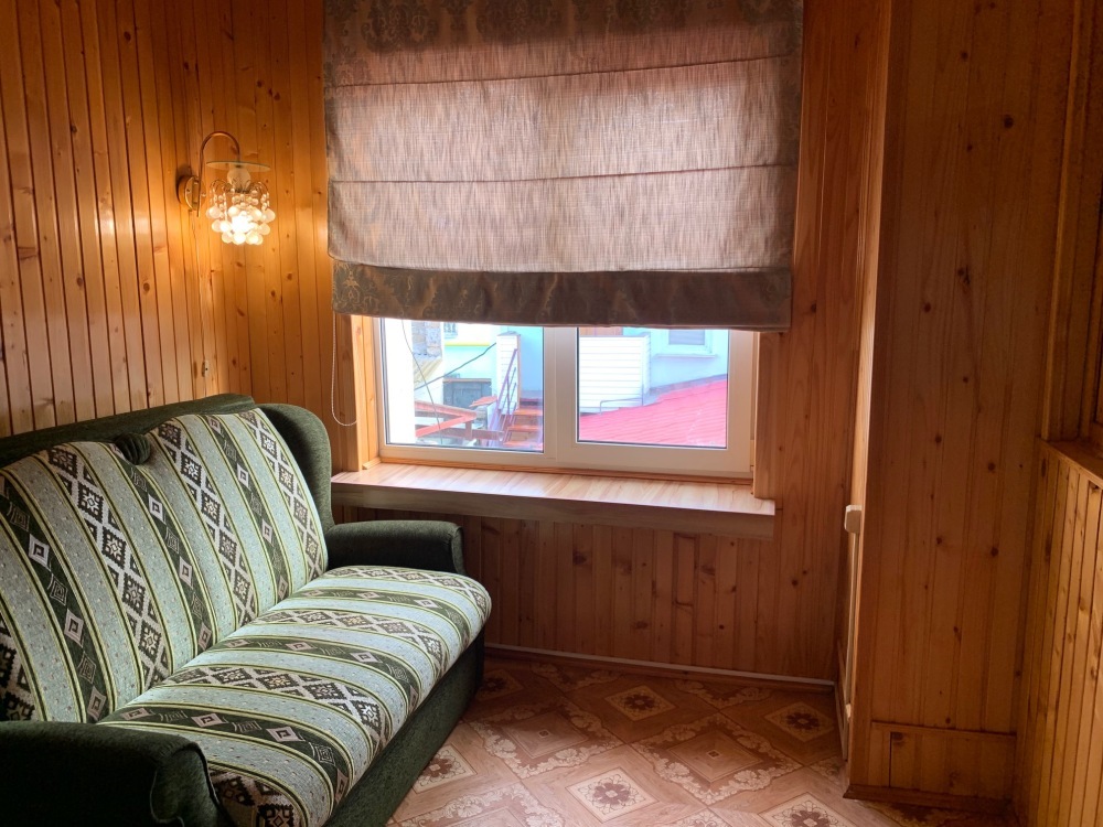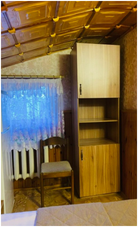 Душ и туалет расположены рядом с номером (только для этого номера). Рядом с номером находится кухня на две семьи. В комнате телевизор, кондиционер. Из мебели: плательный шкаф, мебельная стенка, со шкафчиками для белья и рабочим местом для компьютера. Спальные места: двуспальная кровать и двуспальный диван. Окна номера выходят во двор дома.