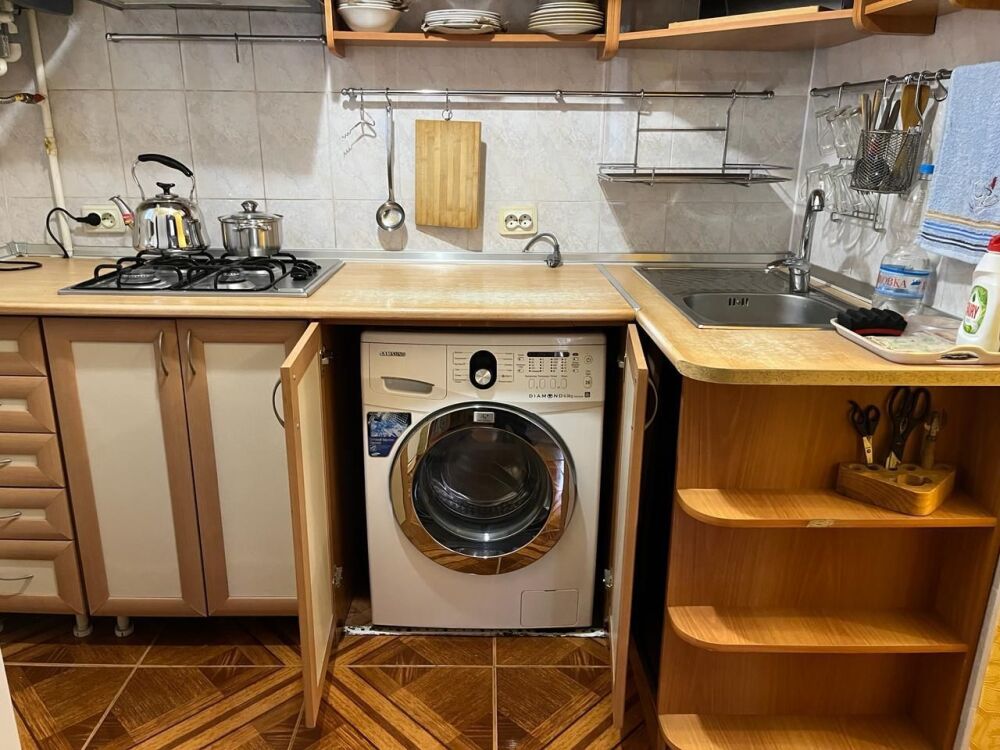 У квартиры очень удачное расположение: с одной стороны она находится в тихом спальном районе, с другой стороны в центре города с развитой инфраструктурой. В шаговой доступности супермаркеты, центральный рынок, магазины, банкоматы, остановки.