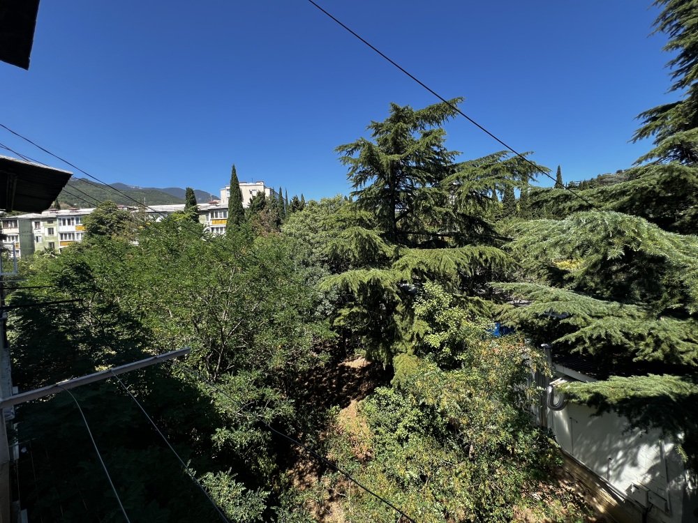 Балкон, На противоположную сторону дома,немного видны горы,в основном деревья