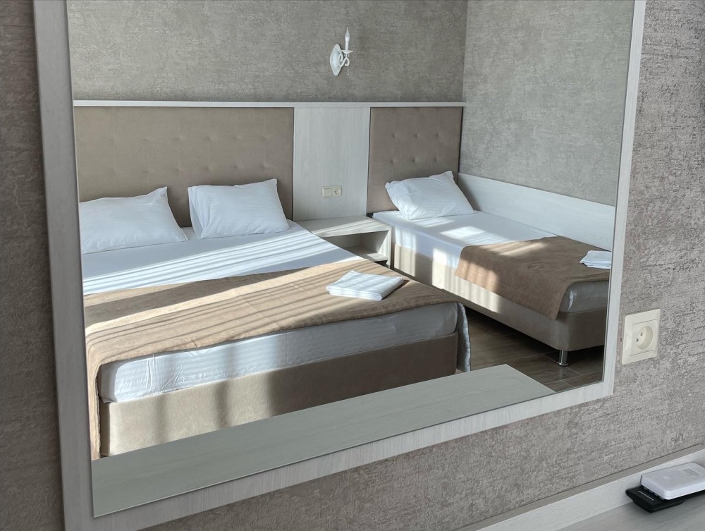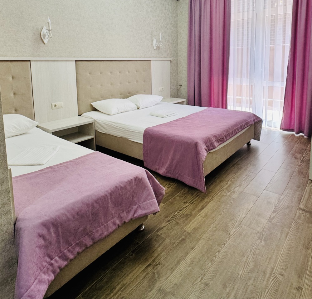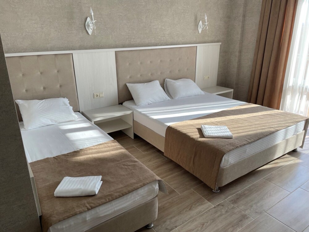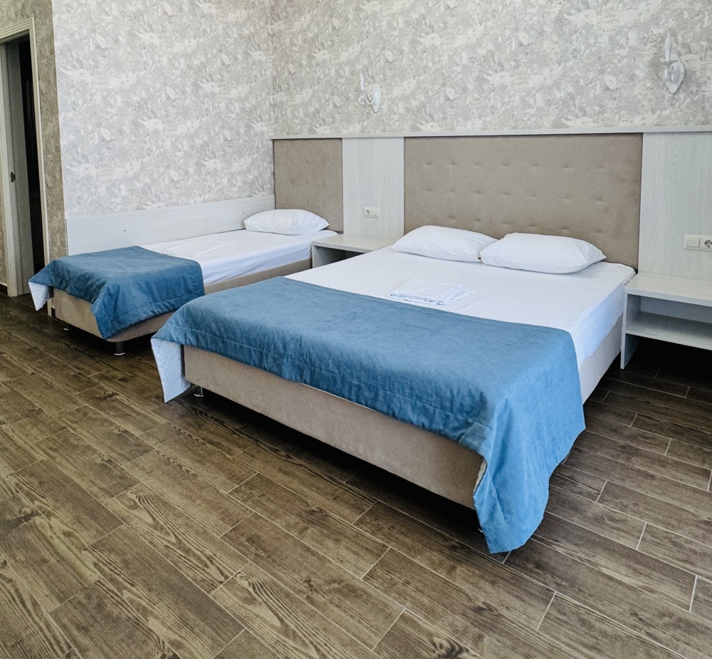 Трехместный номер оснащен всем необходимым для комфортного отдыха.