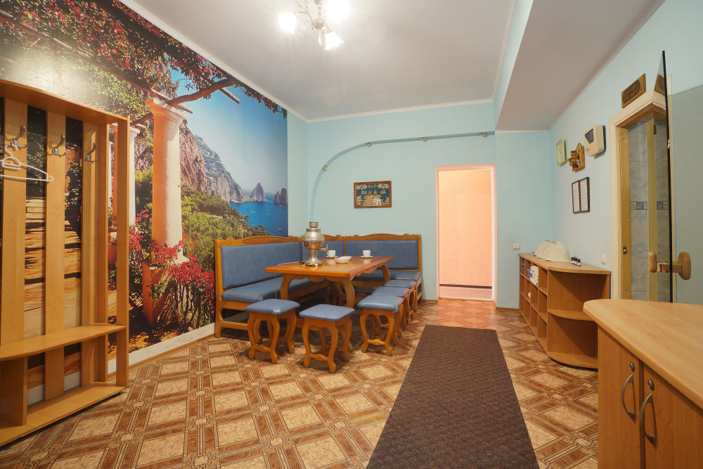 Отдыхали с 03.08 по 17.08 , отелем это не назовёшь. От моря где-то минут 15 пешком. При заезде нас встретила помощница, ни паспорта ни чего не спросили. За 14 дней уборку провели один раз и то надо было напомнить что бы убрали. Слышимасть хорошая, мебель старая , на полу везде ковры уже уставшие и в пятнах. Ванна комната такая же. Сейфа в номере нет, вайфай до 5 го этажа не дотягивает. Кухней общего пользования не пользовались и бумагу туалетную покупали сами. Вообще минусов больше чем плюсов, которых нет.