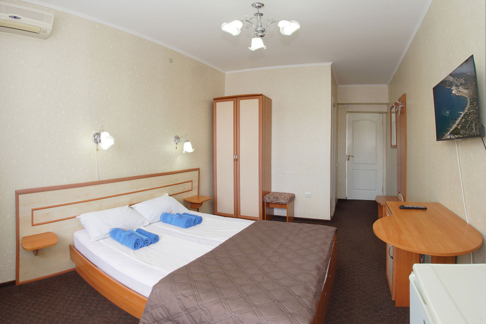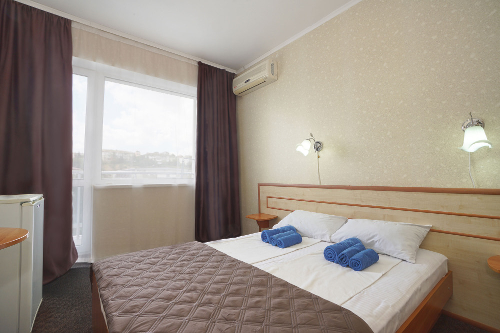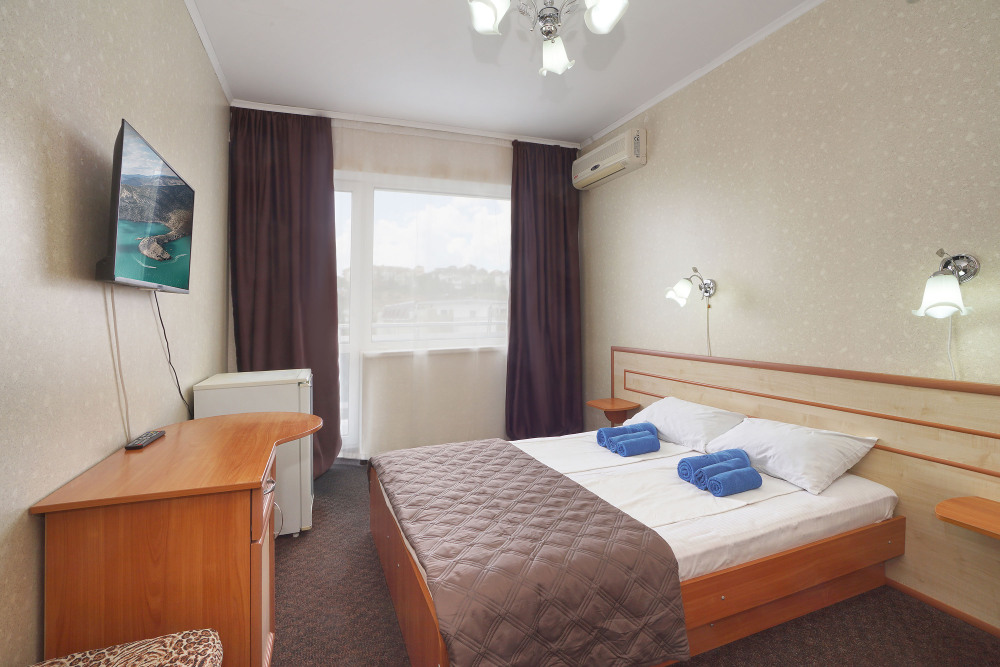 Это современный отель, стильный дизайн которого и европейский уровень обслуживания приятно Вас удивит. Номера просторны и светлые, оборудованы кондиционером и телевизором, мини-холодильником и ванной комнатой с душем. Из окон открывается чудесный вид на Судак, море и горы, а выйдя с утра на балкон, имеющийся у каждого номера, Вы почувствуете неповторимую свежесть морского воздуха.