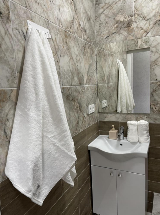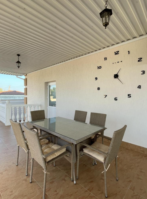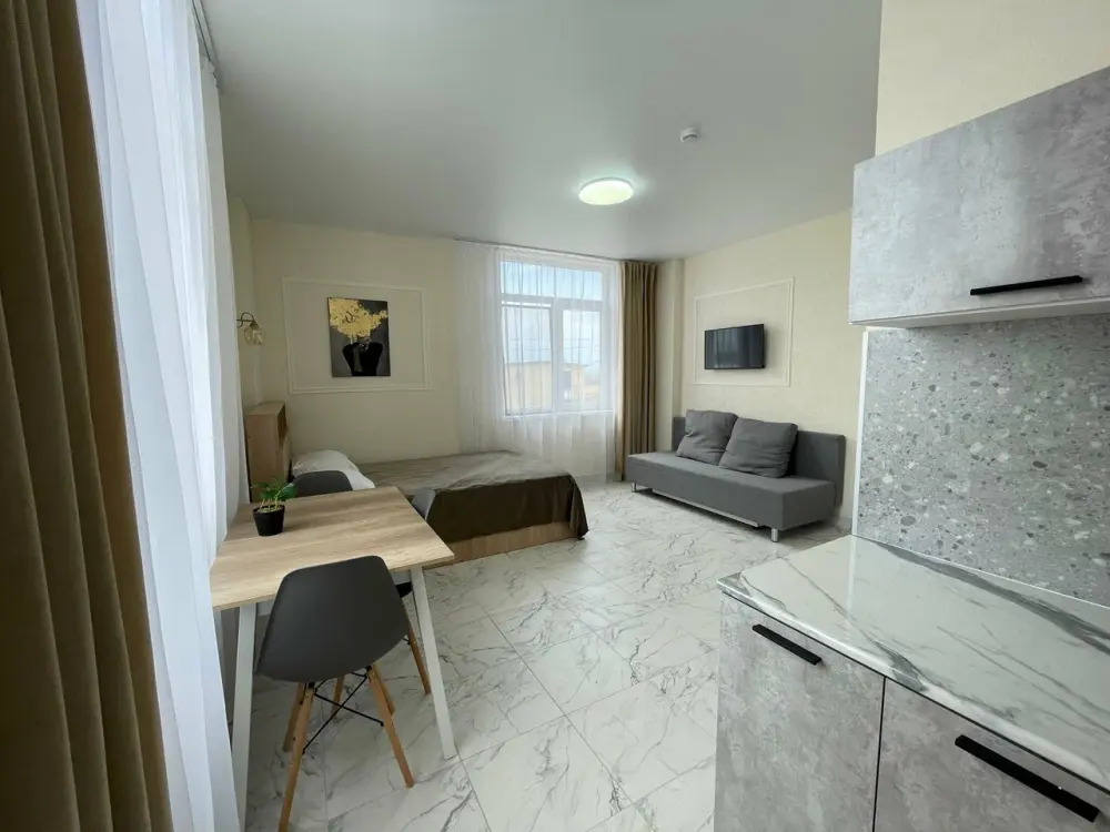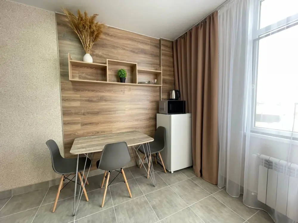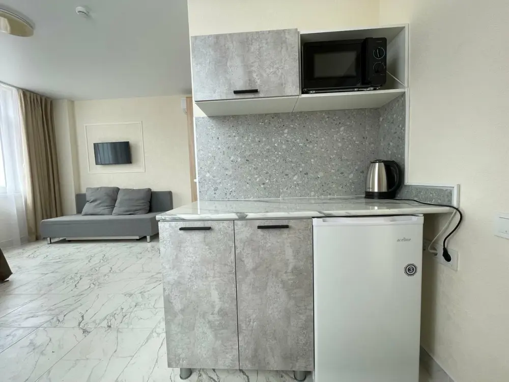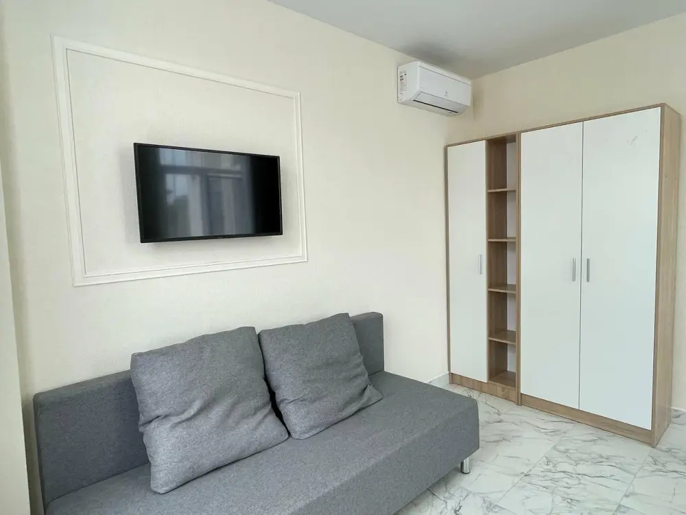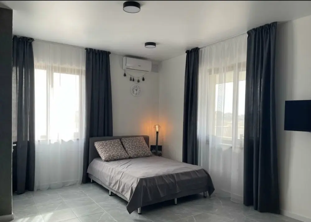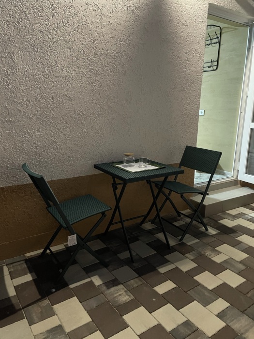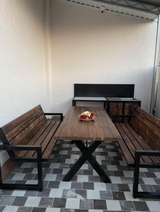 Большая кровать 140х200, двуспальный диван, шкаф, стол, стулья, холодильник, микроволновая печь, чайник. Постельное бельё, банные принадлежности. Бесплатно подогреваемый бассейн, шезлонги, беседка. Стирка, сушка, утюг. Парковка с видеонаблюдением. Хаммам и баня на территории за доп. плату.