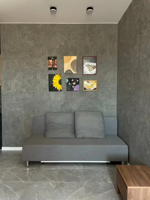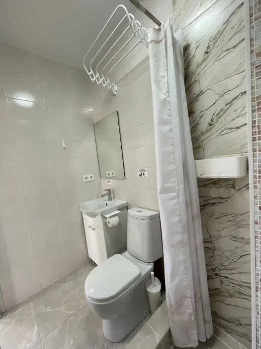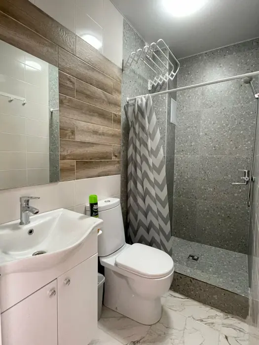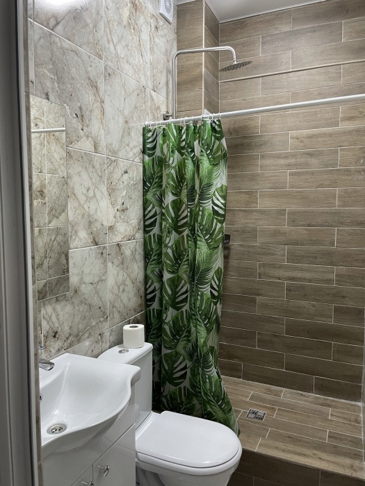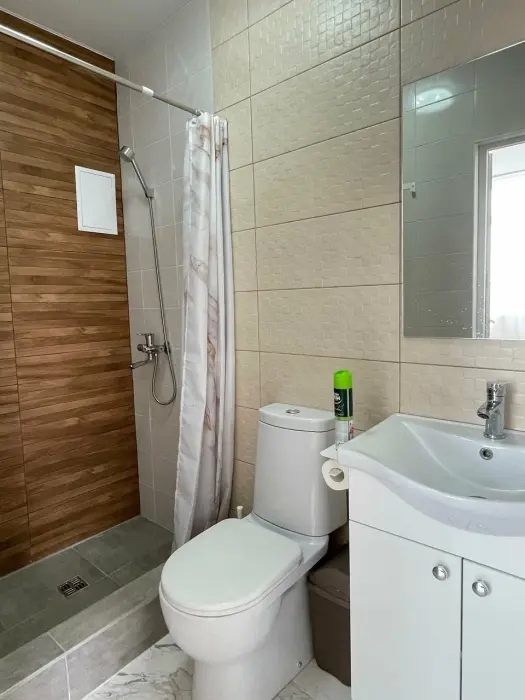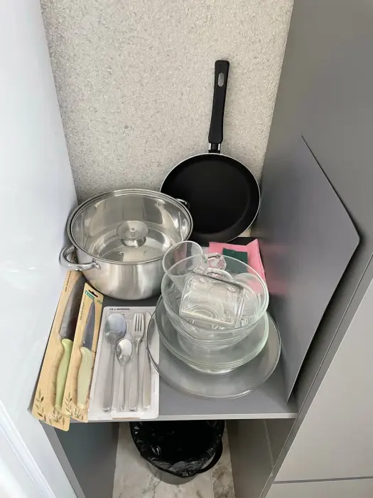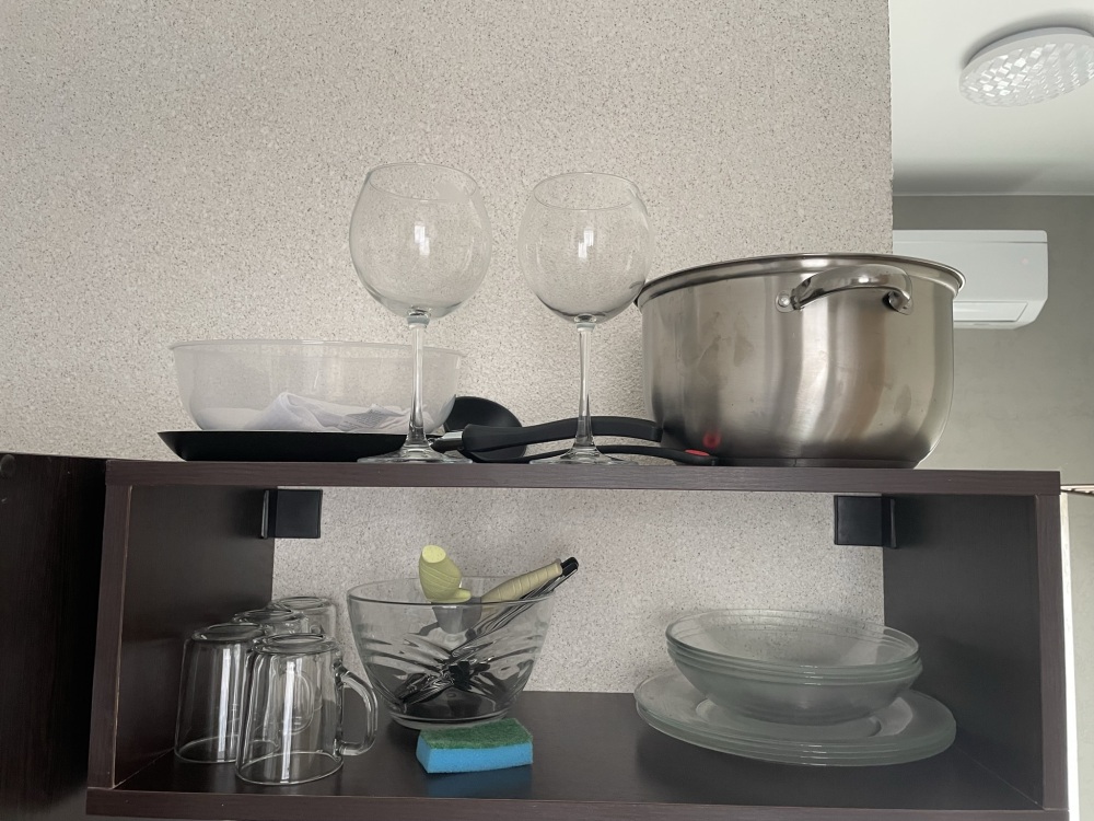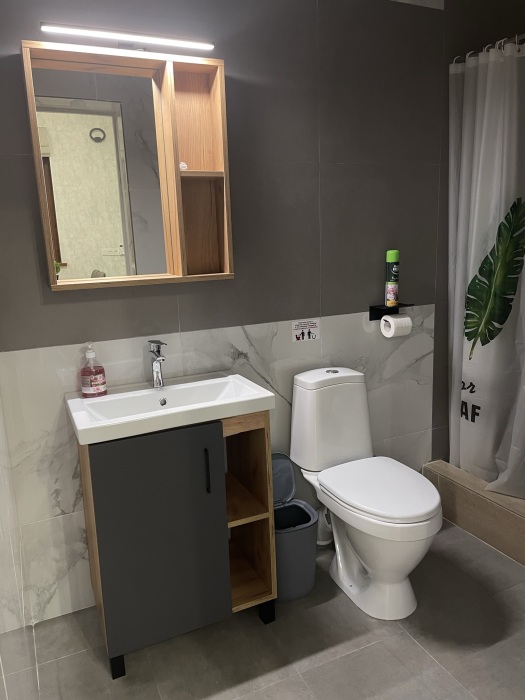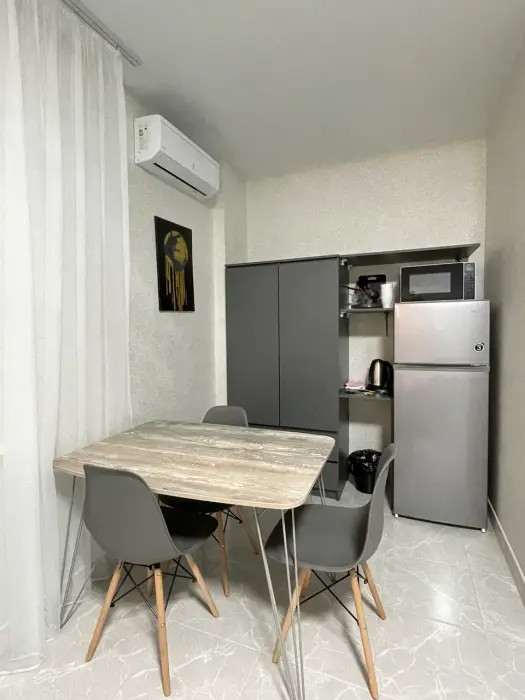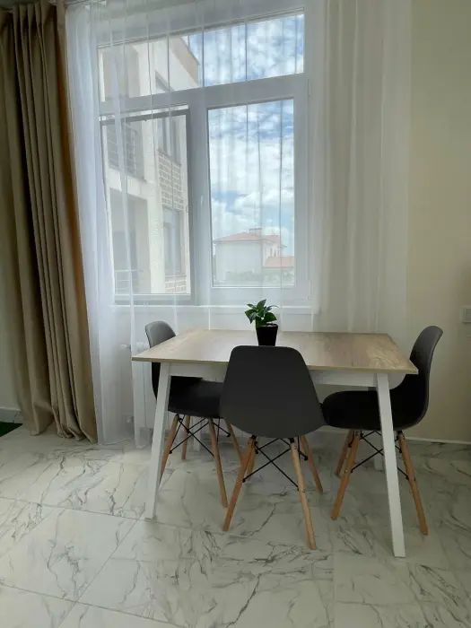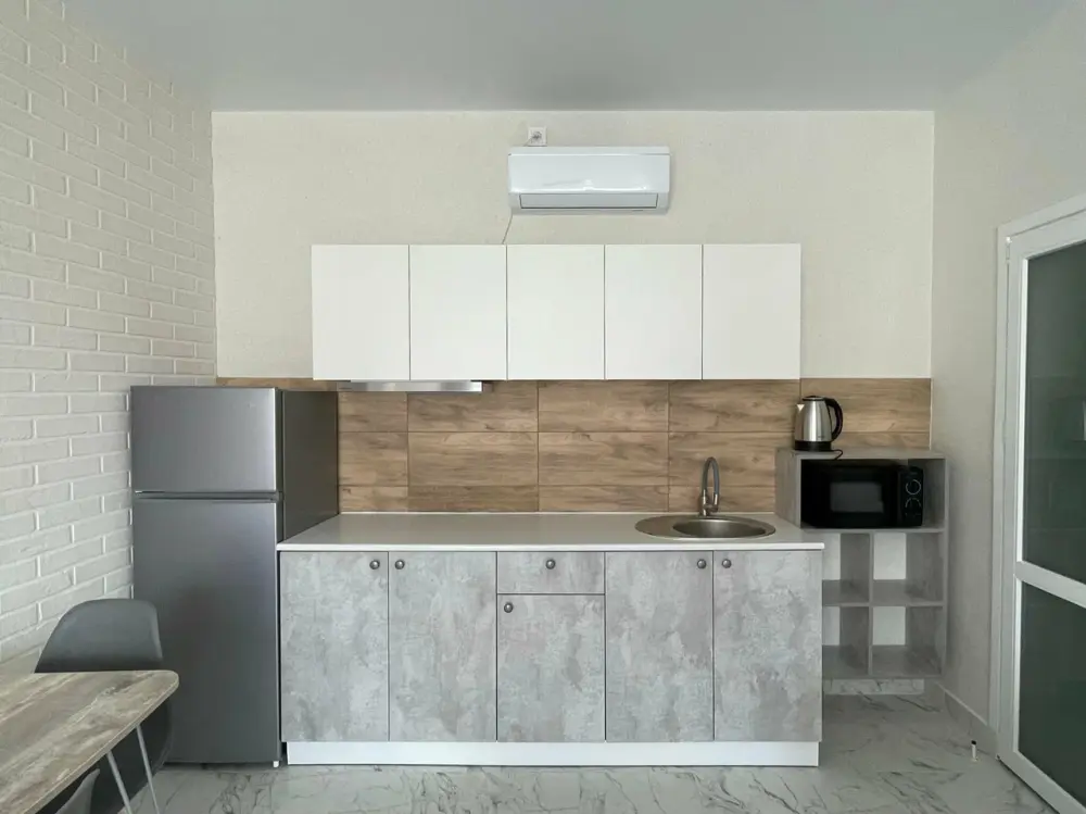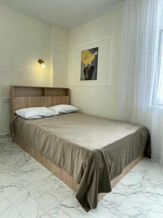 Большая кровать 140х200, двуспальный диван, шкаф, стол, стулья, холодильник, микроволновая печь, чайник. Постельное бельё, банные принадлежности. Бесплатно подогреваемый бассейн, шезлонги, беседка. Стирка, сушка, утюг. Парковка с видеонаблюдением. Хаммам и баня на территории за доп. плату.