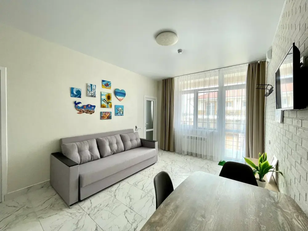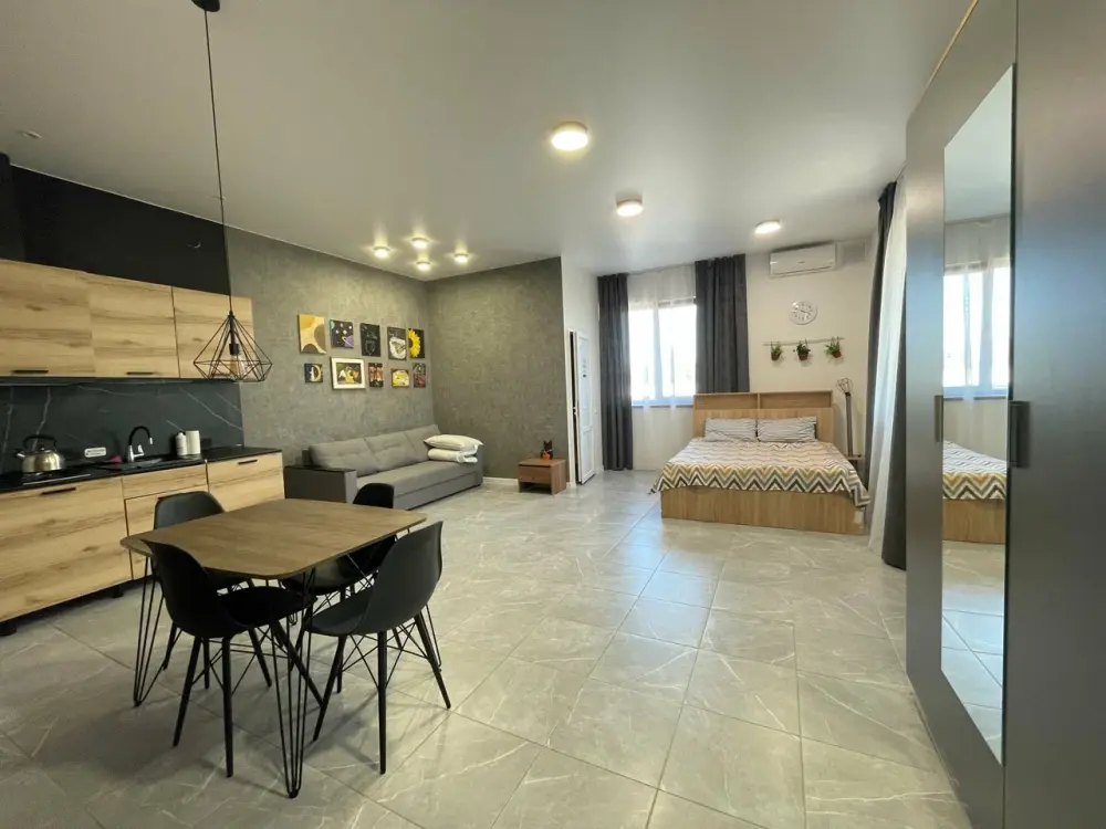 Апартаменты с собственной кухней для 2 взрослых и 2 детей с двуспальной кроватью 160х200, двуспальным диваном.