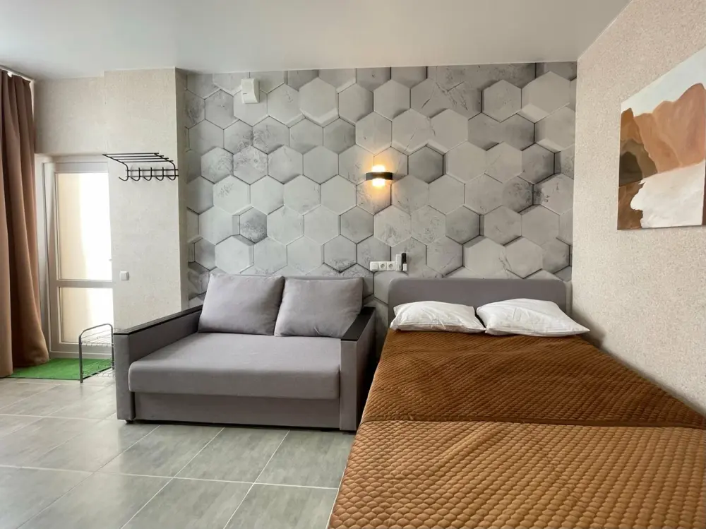 Номер для 2 взрослых и 1 ребенка с двуспальной кроватью 140х200 или 160х200, двуспальным диваном.