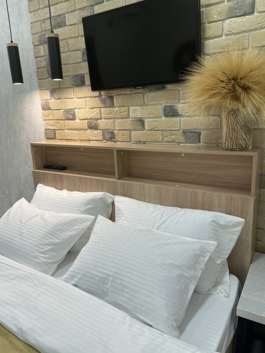 Номер для 2 взрослых и 2 детей с двуспальной кроватью 140х200 или 160х200, двуспальным диваном. Залог от 5000