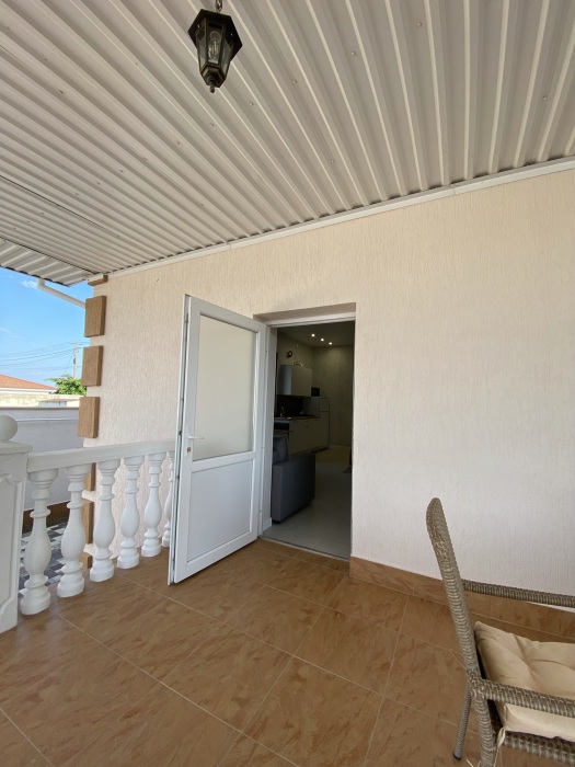 Четырехместный номер с видом на море. Имеется большая двуспальная кровать, двуспальный диван, кухня с холодильником, чайником, микроволновой печью, ванная комната, кондиционер. Бесплатно подогреваемый бассейн, шезлонги, парковка с видеонаблюдением. Сауна и хаммам за дополнительную плату.