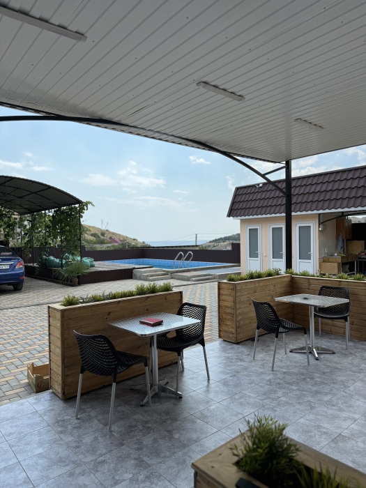 Для удобства гостей в гостевом доме есть общая кухня, где можно приготовить еду или просто насладиться чашечкой кофе. На кухне есть все необходимое для приготовления пищи. Также к услугам гостей - мангал, открытый бассейн, стиральная машина.