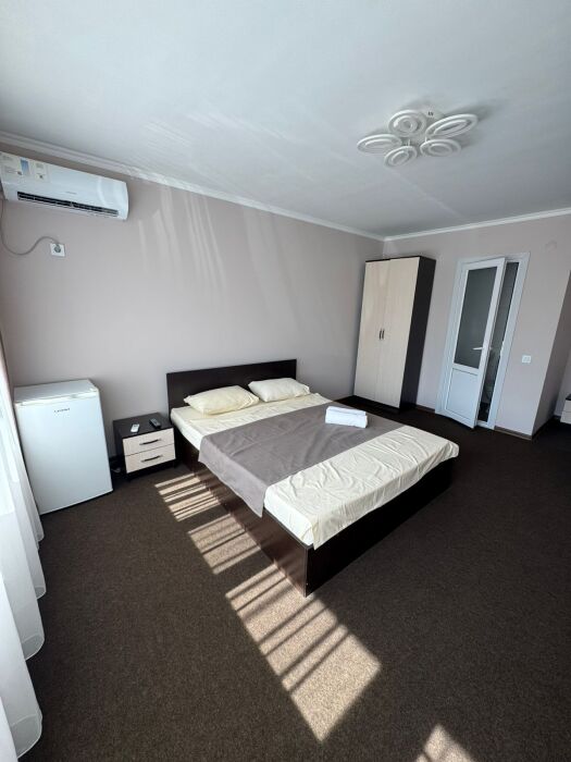 Предоставляется номер двух (трехместный) с балконом. В номере есть санузел (душ, туалет). Также: кондиционер, холодильник, телевизор.