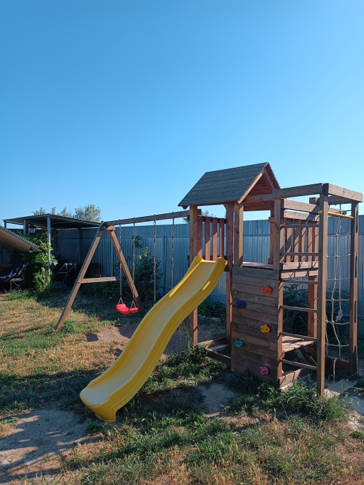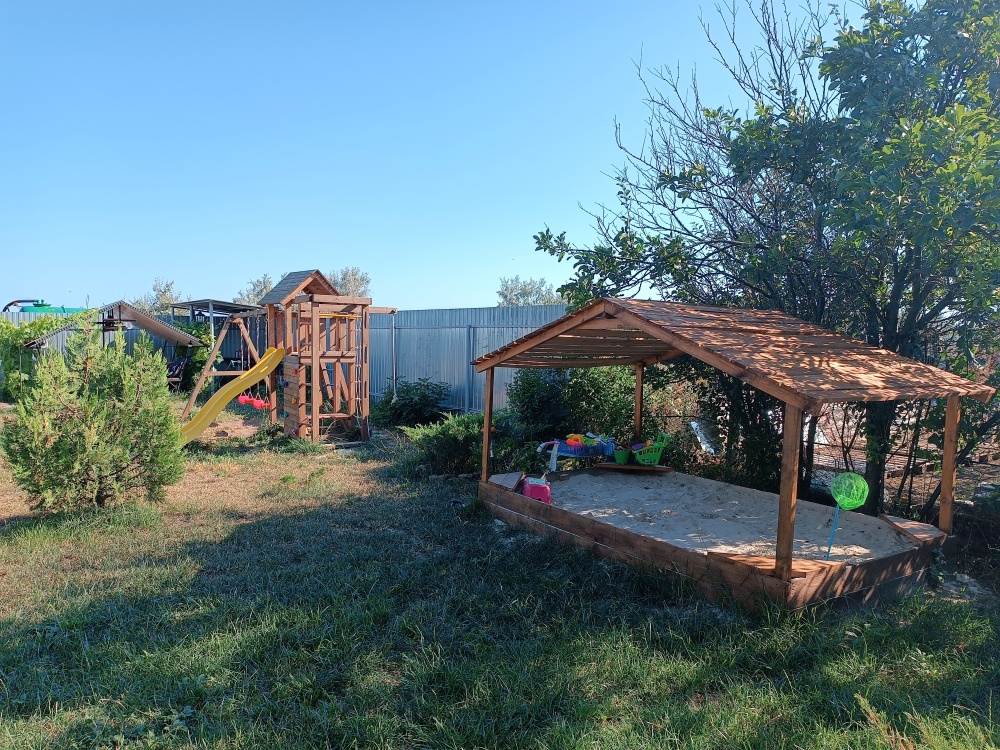 На территории мангальная зона, детская площадка, терраса для каждого со своим столиком. Парковка как на придворовой территории, так и внутри. Дополнительные услуги - бесплатный трансфер к пляжу. Спешите, будем рады видеть вас!)